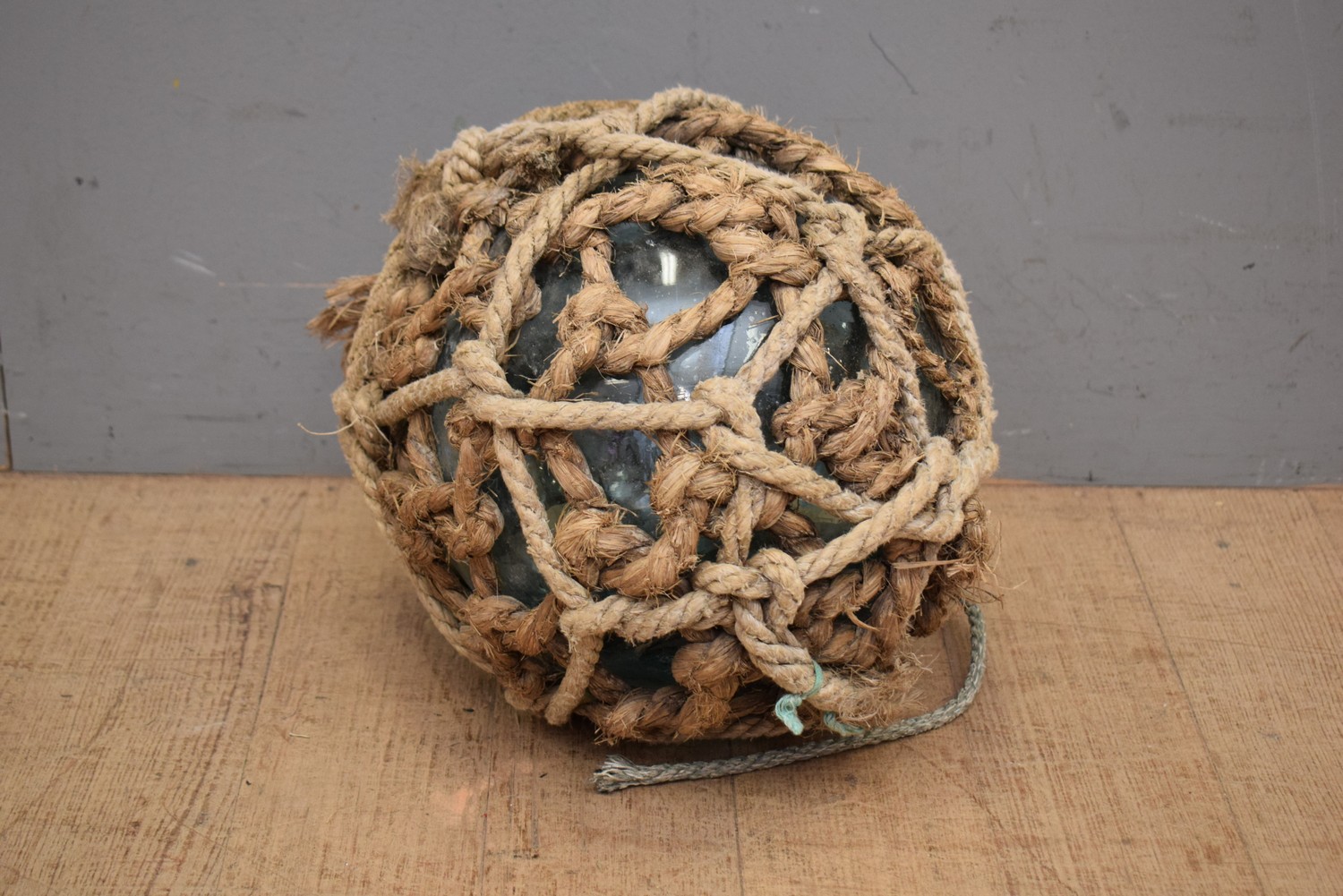 A 1920S GLASS AND NATURAL FIBRE COVERED SHIPS/FISHING FLOAT/BUOY (28D CM) (LEONARD JOEL DELIVERY SIZE: SMALL)