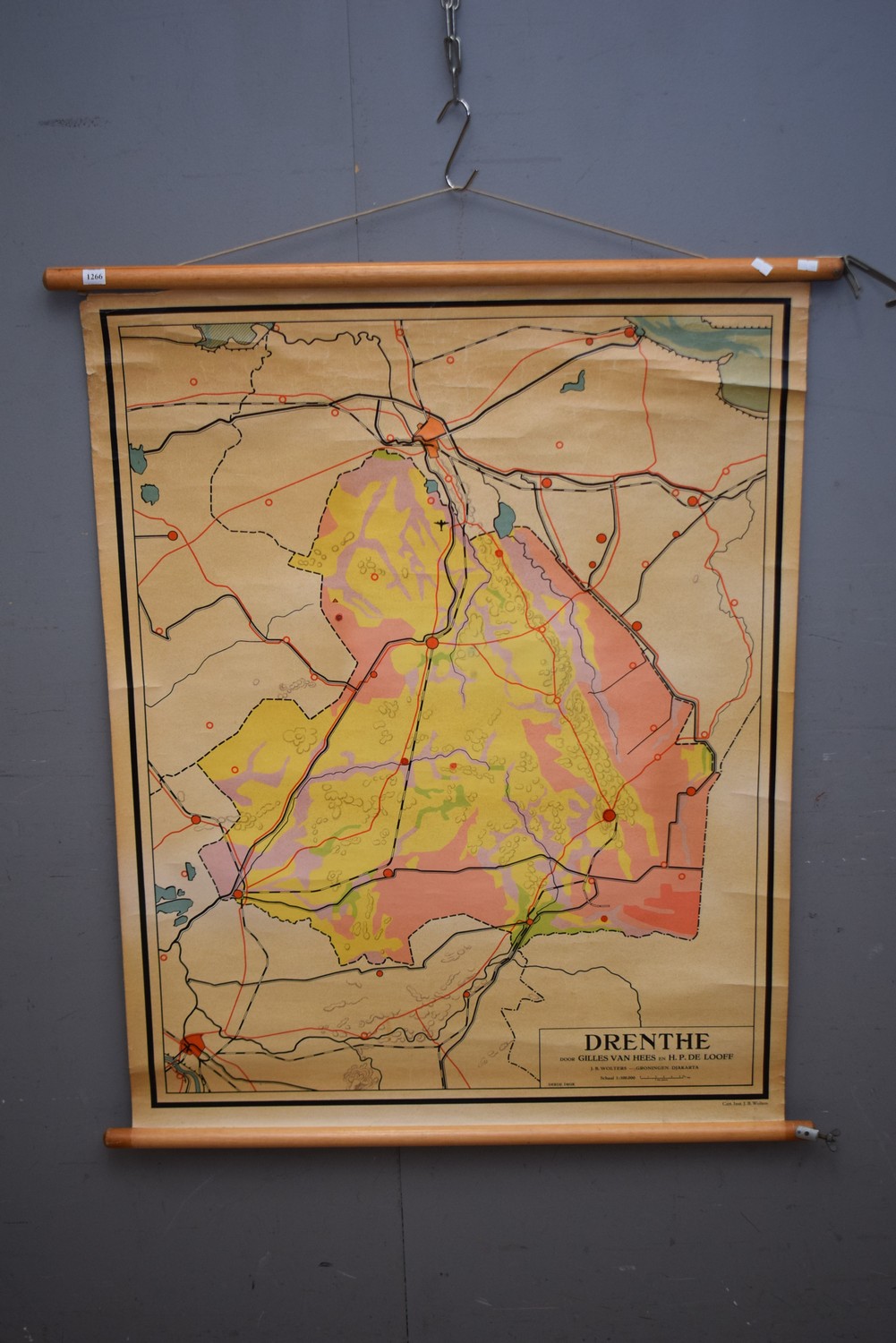 A 1920S WOODEN MOUNTED FABRIC MAP OF DRENTHE BY GILLES VAN HEES (111H x 91W CM) (LEONARD JOEL DELIVERY SIZE: MEDIUM)