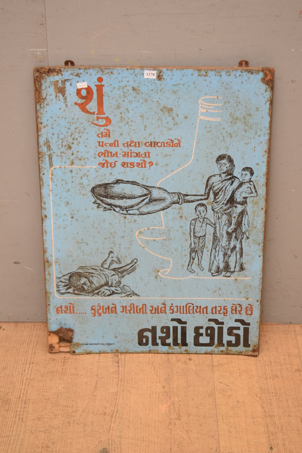 AN INDIAN PAINTED TIN SIGN (72H x 52W CM) (LEONARD JOEL DELIVERY SIZE: MEDIUM)