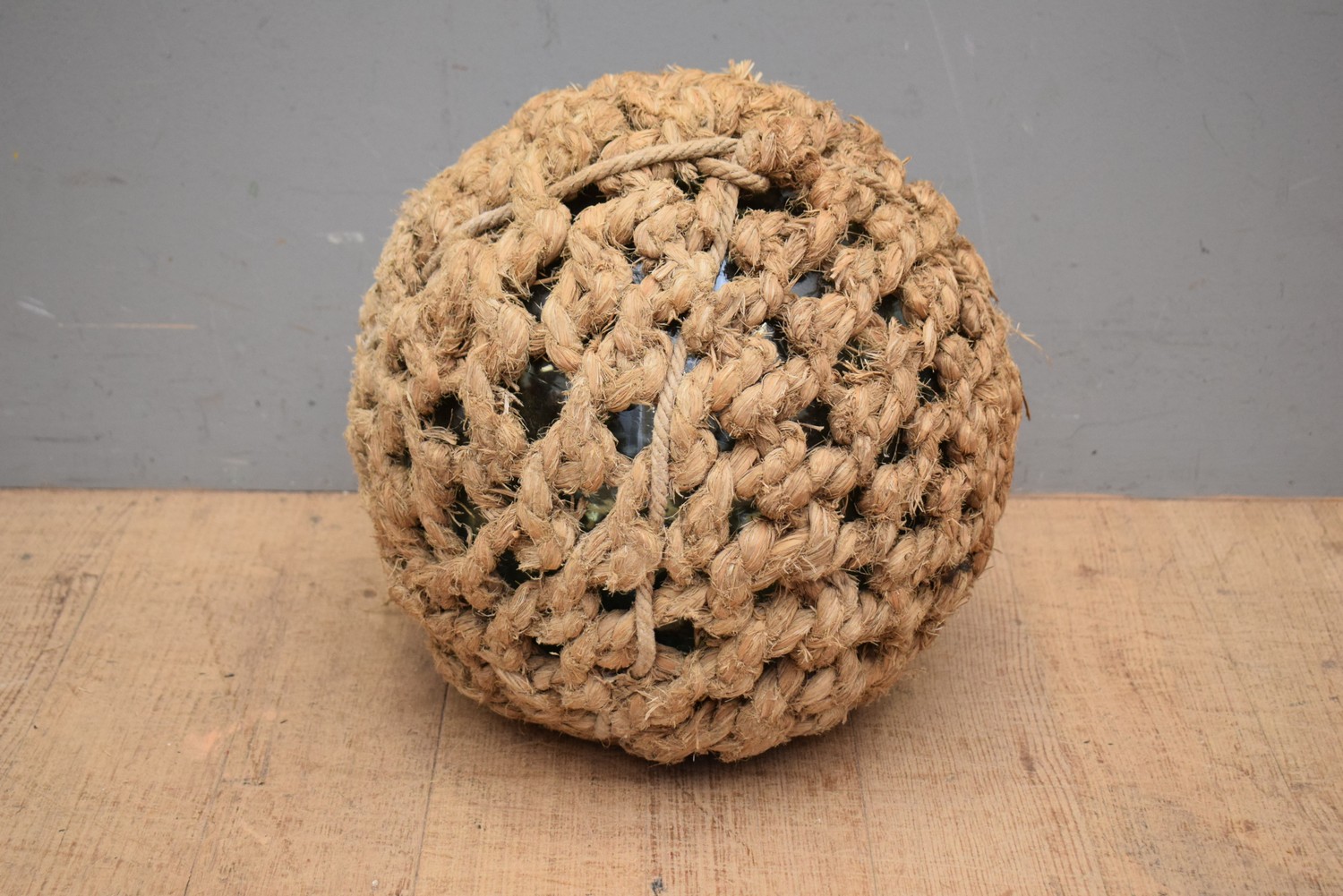 A GLASS AND NATURAL FIBRE COVERED SHIPS/FISHING FLOAT (36D CM) (LEONARD JOEL DELIVERY SIZE: MEDIUM)