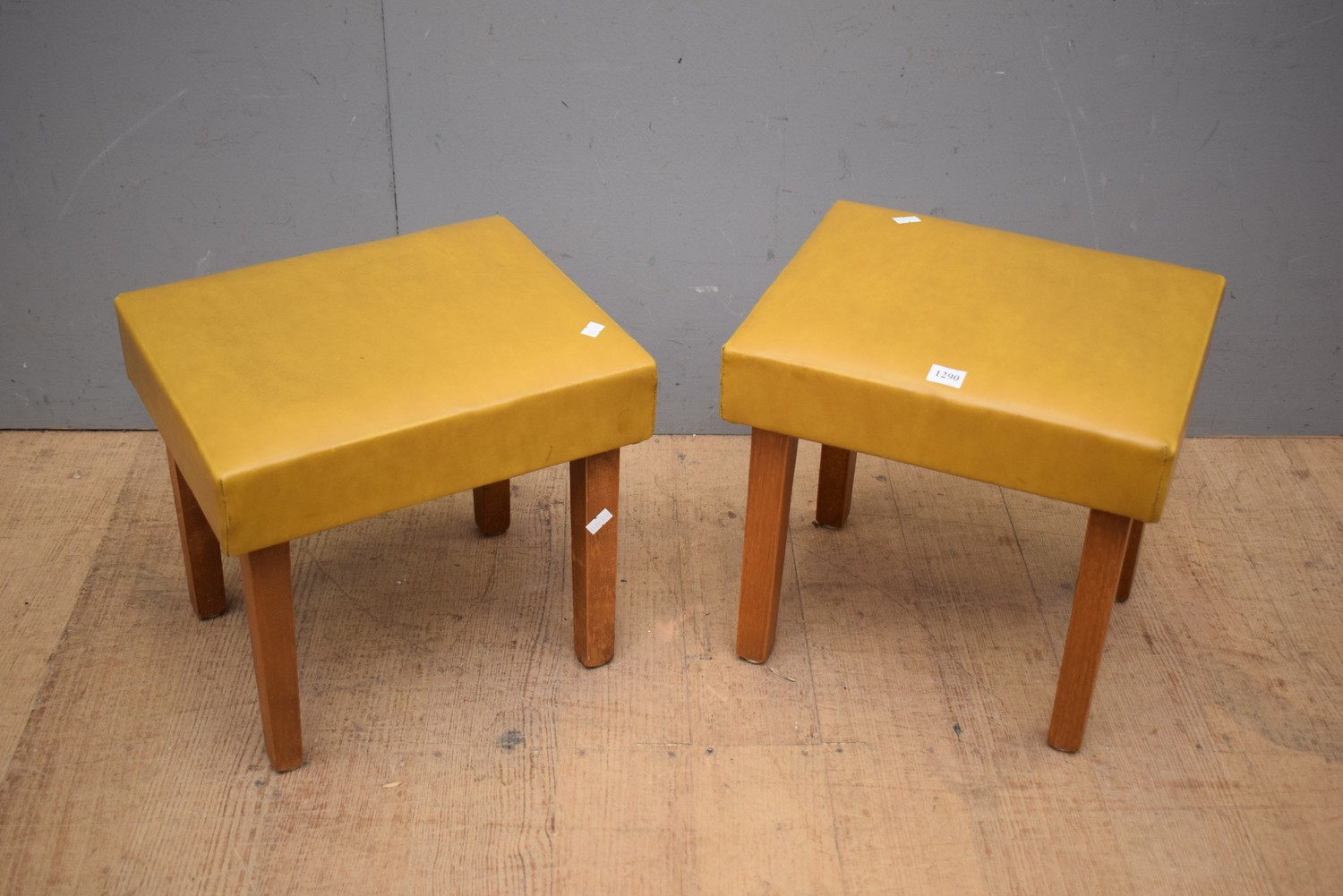 A PAIR OF 1950S WOODEN AND VINYL UPHOLSTERED STOOLS (34H CM) (LEONARD JOEL DELIVERY SIZE: SMALL)