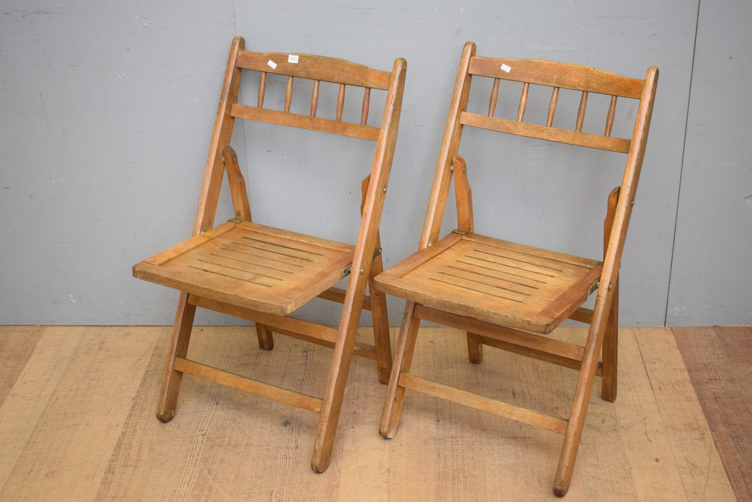 A PAIR OF 1940S ENGLISH OAK WOODEN FOLDING CHAIRS (80H x 46W x 51D CM) (LEONARD JOEL DELIVERY SIZE: MEDIUM)
