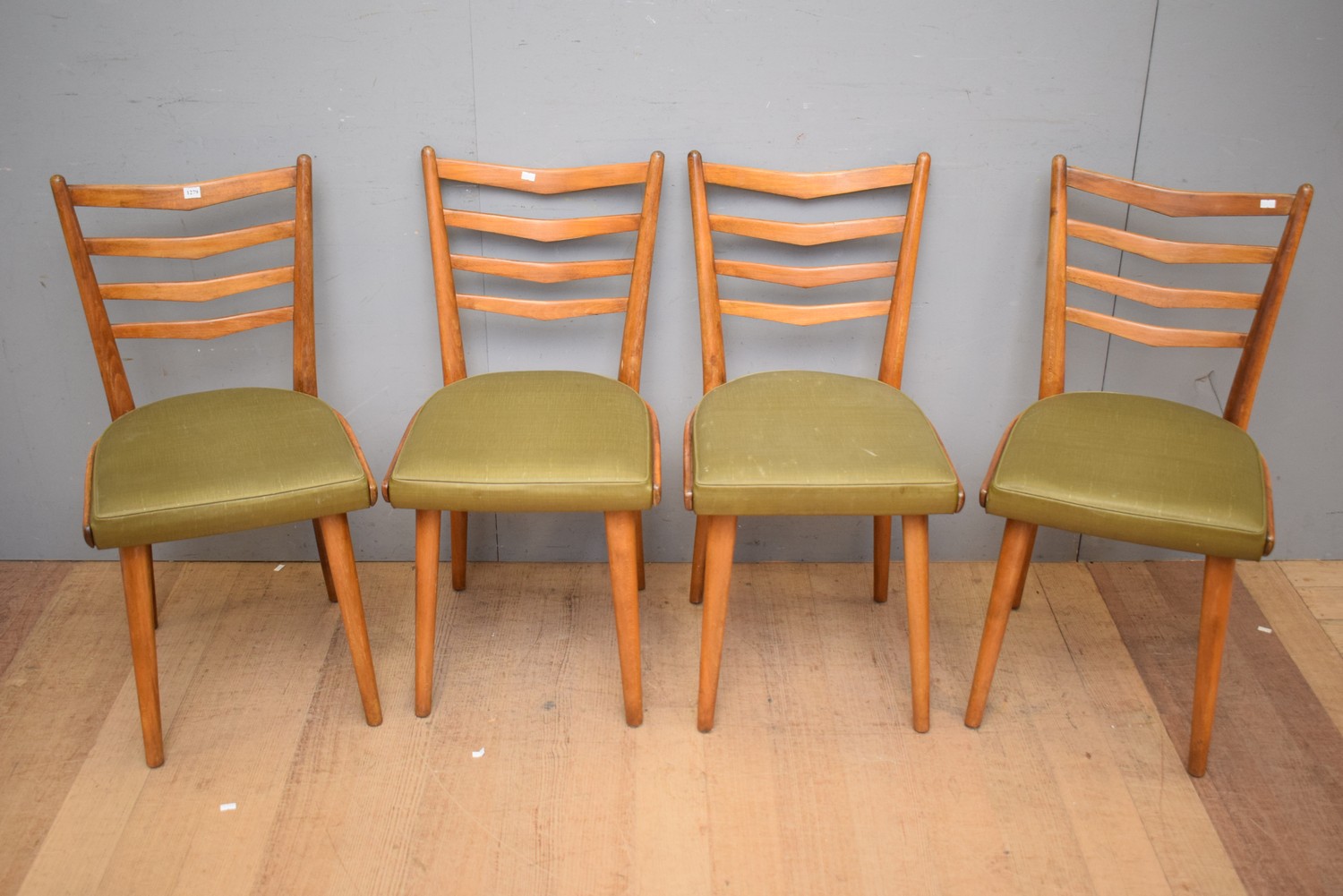 A SET OF FOUR 1920S CZECH LIGNA BENTWOOD LADDERBACK CHAIRS WITH UPHOLSTERED SEATS (A/F) (82H x 43W x 53D CM) (LEONARD JOEL DELIVERY SIZE: LARGE)