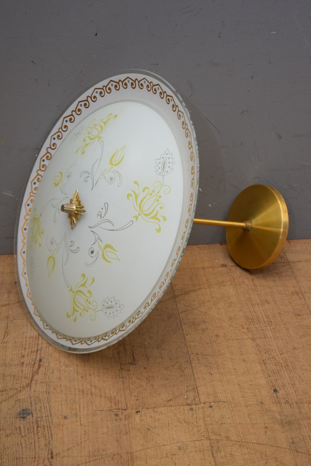 AN AUSTRALIAN RETRO 1950S KEMPTHORNE GLASS GOLD CEILING LIGHT (45D CM) (LEONARD JOEL DELIVERY SIZE: SMALL)
