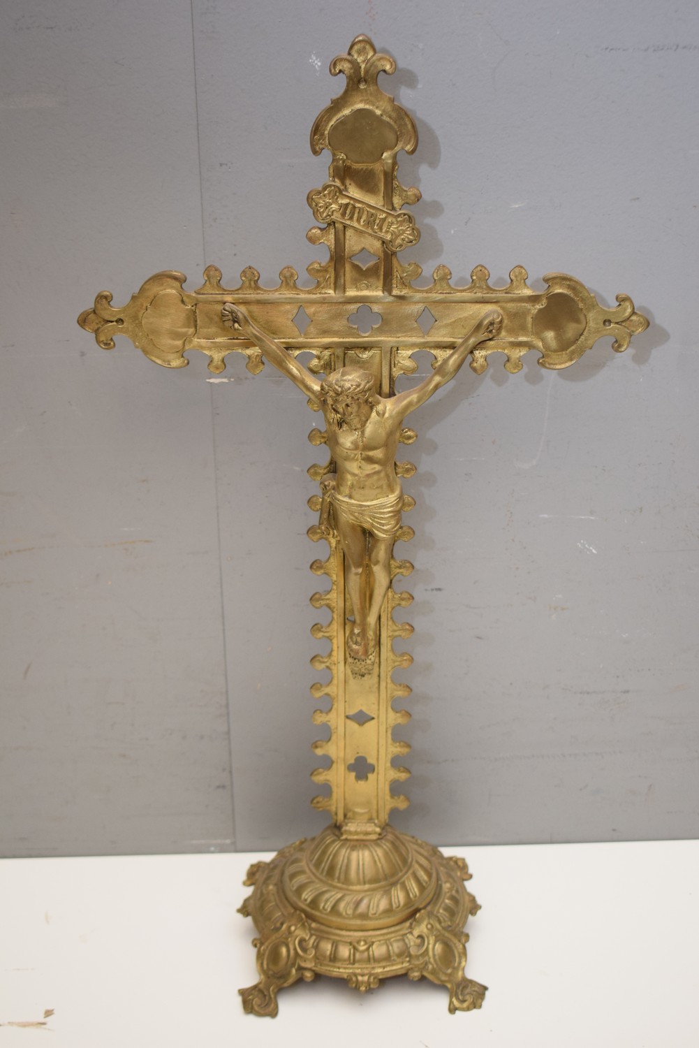 A LARGE GILT EFFECT RELIGIOUS CRUCIFIX (71H x 39W CM) (LEONARD JOEL DELIVERY SIZE: MEDIUM)