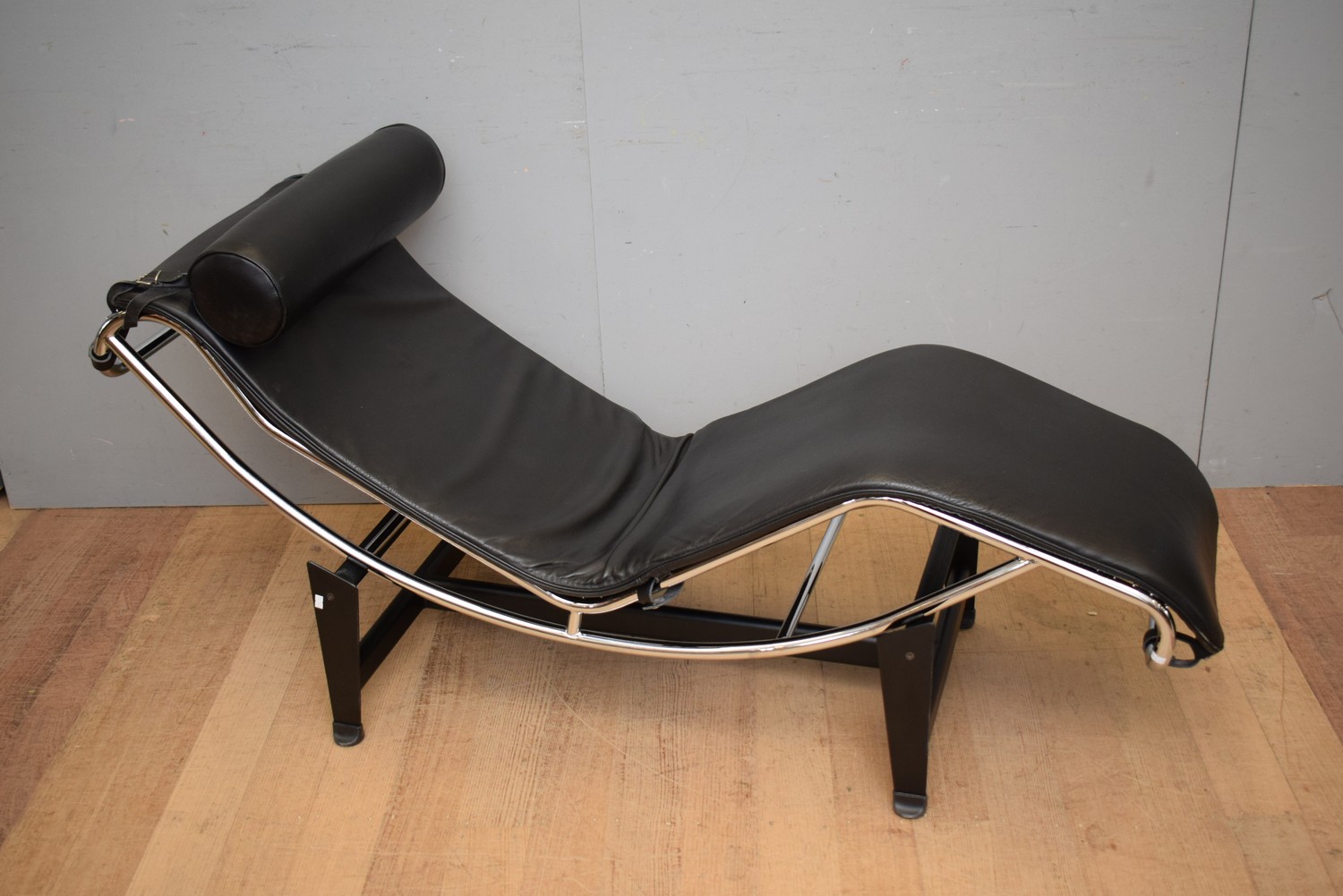 A LE CORBUSIER STYLE LC4 LEATHER LOUNGE CHAIR (77H x 162W x 55D CM) (LEONARD JOEL DELIVERY SIZE: LARGE)