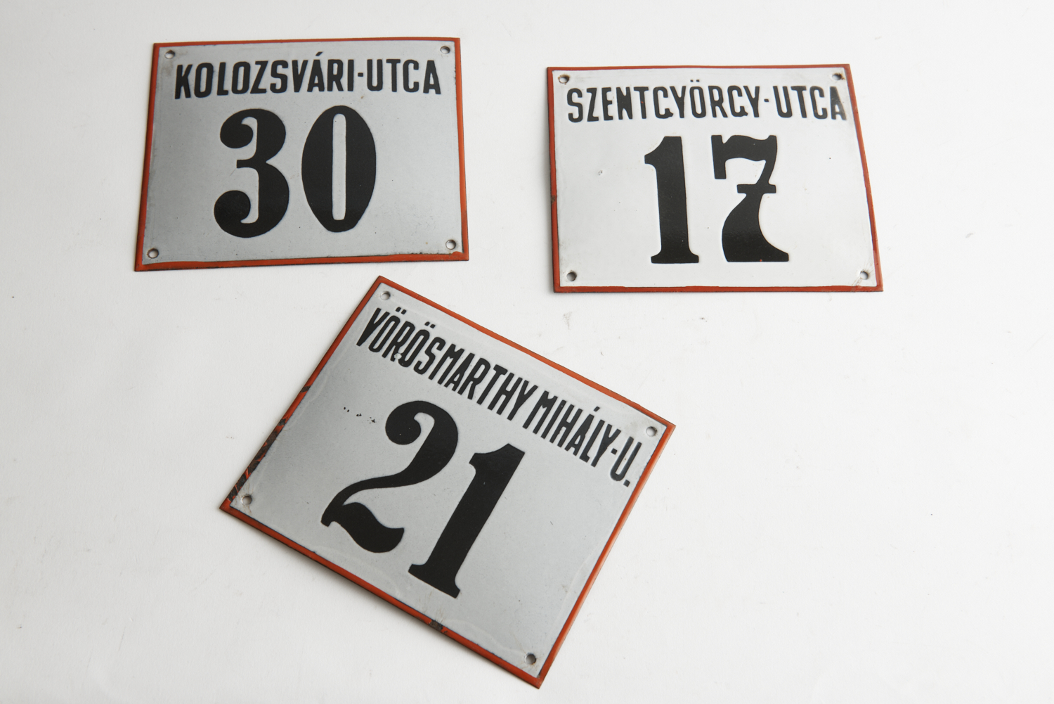 THREE HUNGARIAN ENAMEL HOUSE NUMBER SIGNS, LEONARD JOEL LOCAL DELIVERY SIZE: SMALL