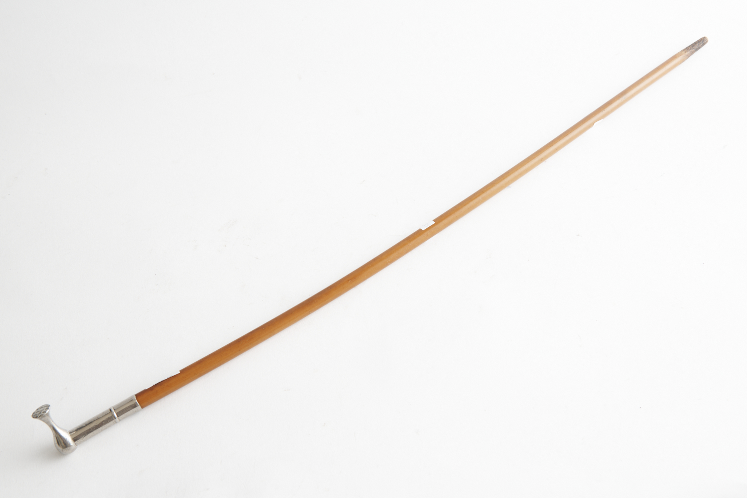 A NICKEL TOPPED AND MALACCA CANE HUNTING STICK CROP L.64CM, LEONARD JOEL LOCAL DELIVERY SIZE: SMALL