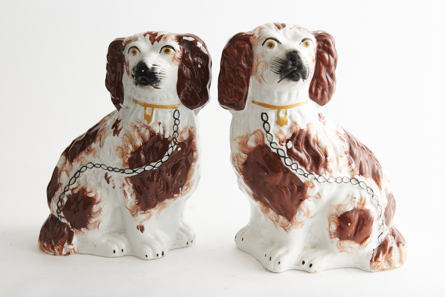 A PAIR OF STAFFORDSHIRE DOGS (A/F) H.24CM, LEONARD JOEL LOCAL DELIVERY SIZE: SMALL