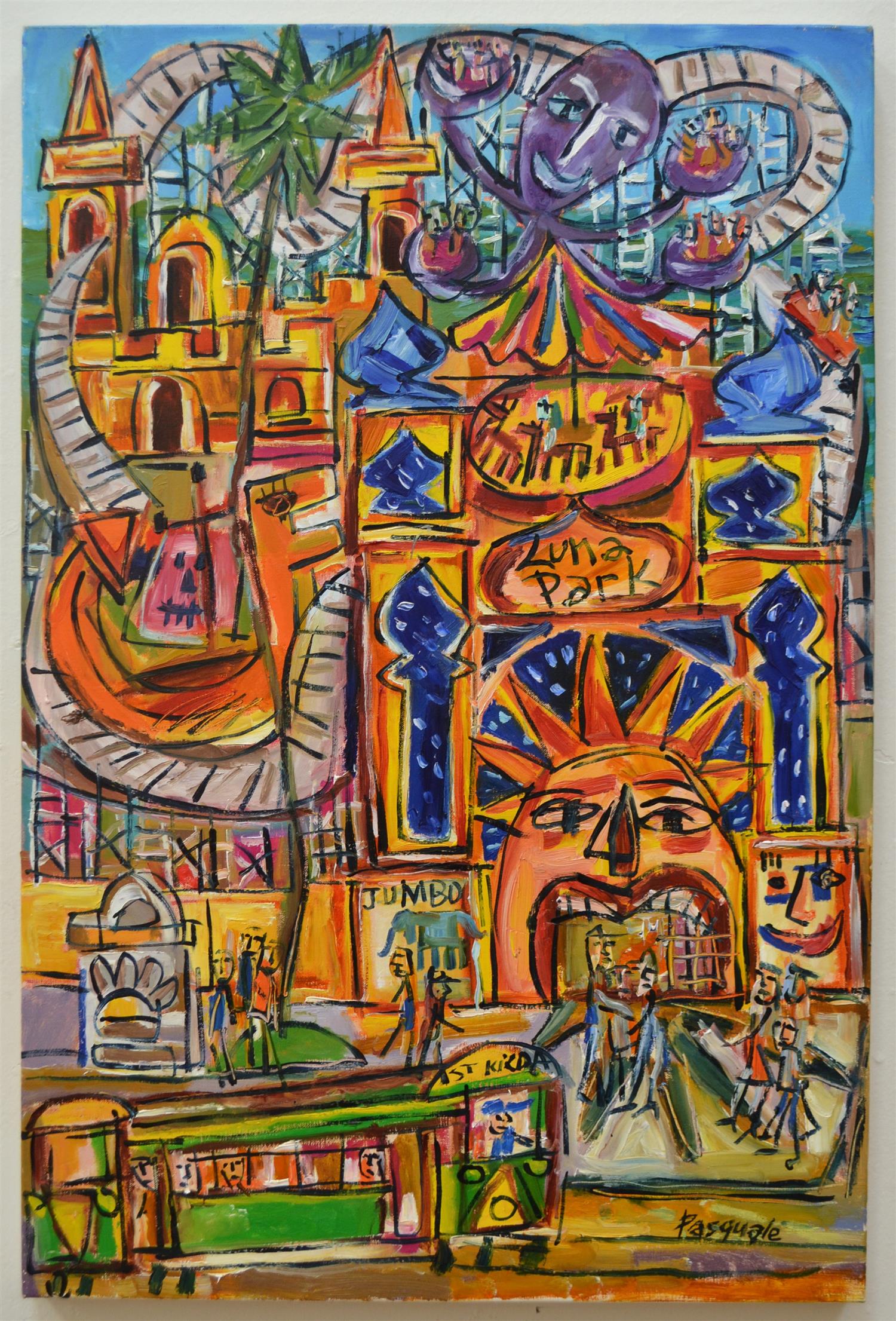 PASQUALE GIARDINO, LUNA PARK, ACRYLIC ON CANVAS, 91 X 61CM, NO ADDITIONAL FRAMING, CONDITION: VERY GOOD WITH WEAR TO EDGES, LEONARD JOEL DELIVERY SIZE: MEDIUM