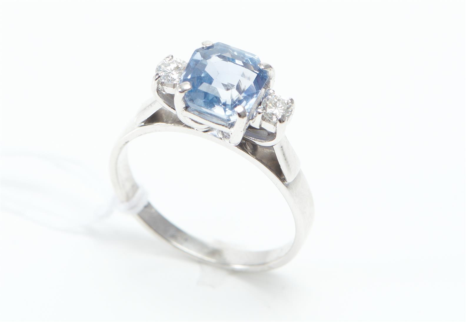 Approximate Diamond grade H-I/SI. The Sapphire shows some chips to the girdle in multiple areas. Band is inscribed with words and a date.