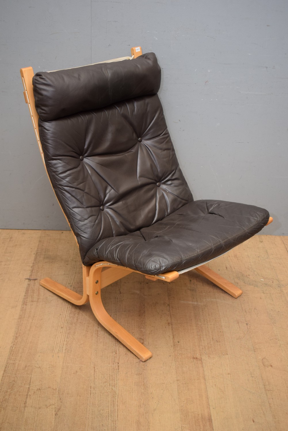 A MID-CENTURY WESTNOVA LEATHER AND PLYWOOD HIGH SIESTA LOUNGE CHAIR (A/F TO LEATHER) (98H x 66W x 81D CM) (LEONARD JOEL DELIVERY SIZE: MEDIUM)