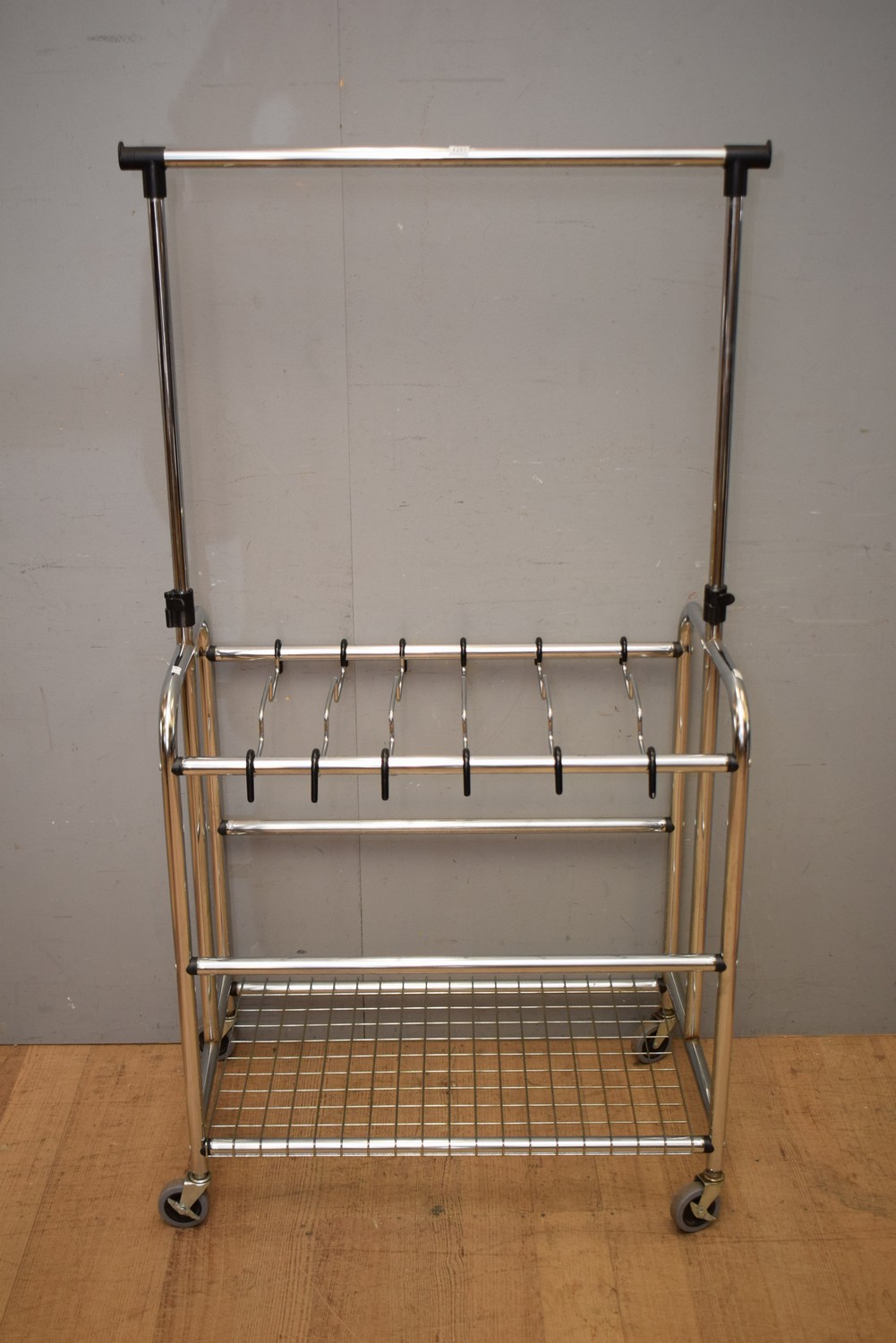 A METAL CLOTHING DISPLAY RACK (153H X 78W X 45D CM) (LEONARD JOEL DELIVERY SIZE: MEDIUM)