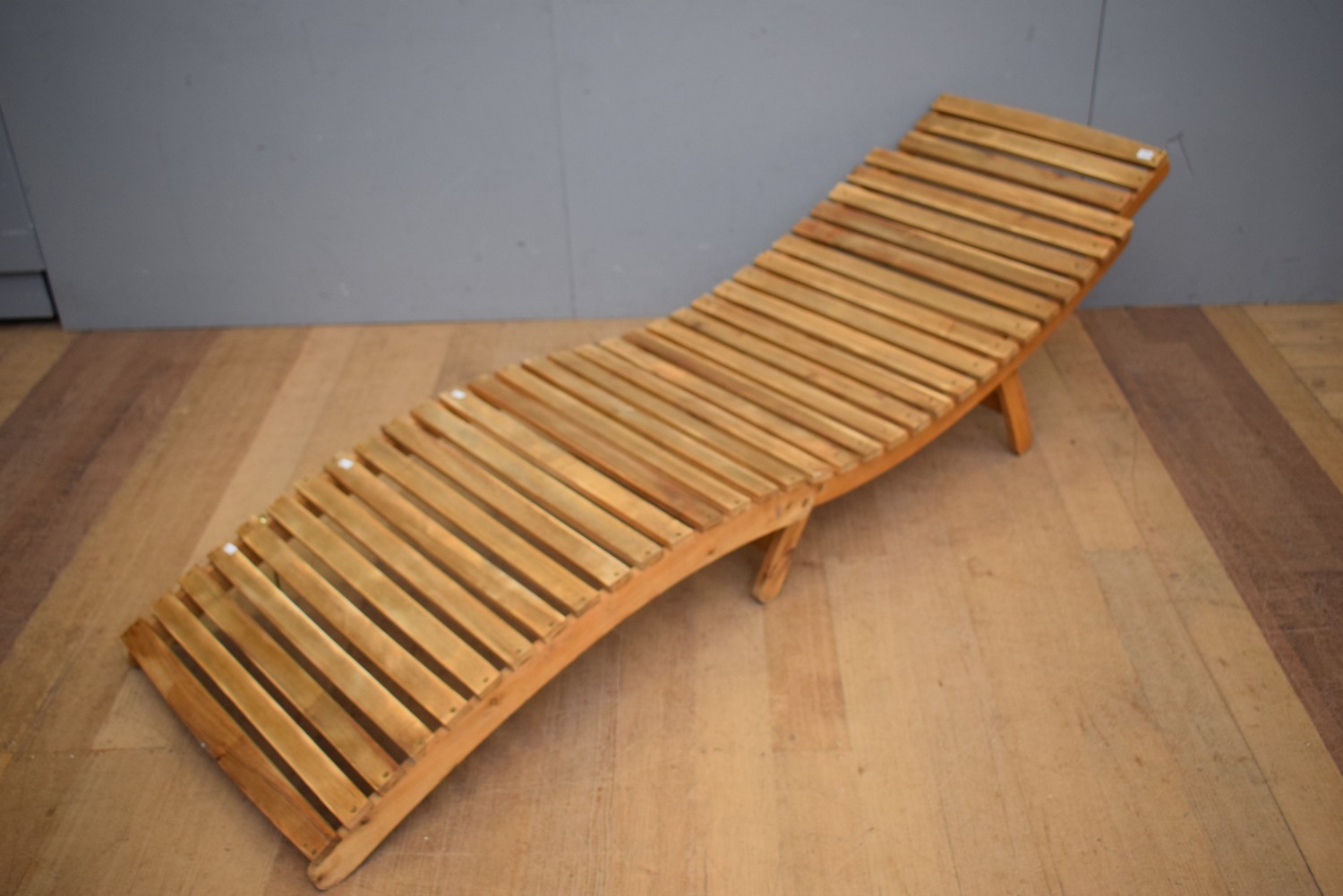 A FOLDABLE TEAK SUN LOUNGE (51H X 190W X 60D CM) (LEONARD JOEL DELIVERY SIZE: MEDIUM)