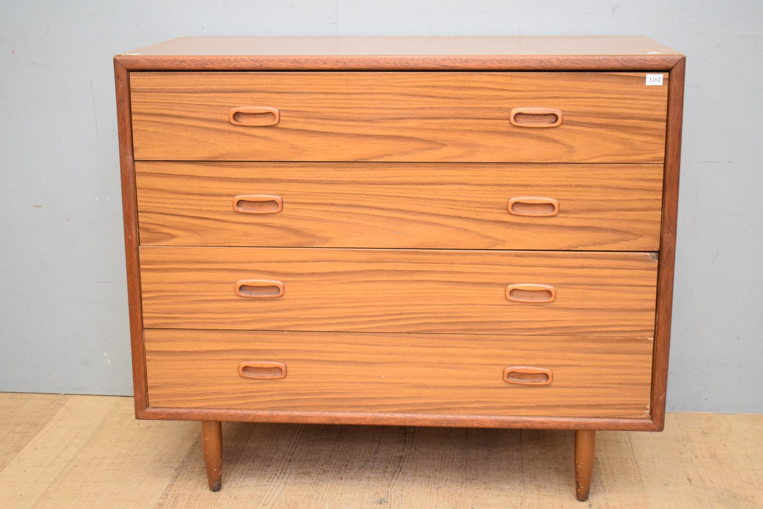 A MID-CENTURY FOUR DRAWER CHEST (A/F) (78H X 91W X 45D CM) (LEONARD JOEL DELIVERY SIZE: LARGE)