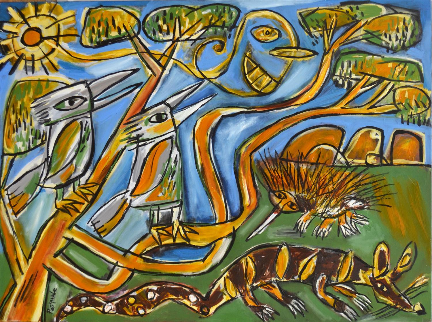 PASQUALE GIARDINO, LAUGHTER, ACRYLIC ON CANVAS, 92 X 122CM, STRETCHED AND READY TO HANG, CONDITION: GOOD CONDITION, SOME SURFACE SCRATCHES. LEONARD JOEL DELIVERY SIZE: LARGE