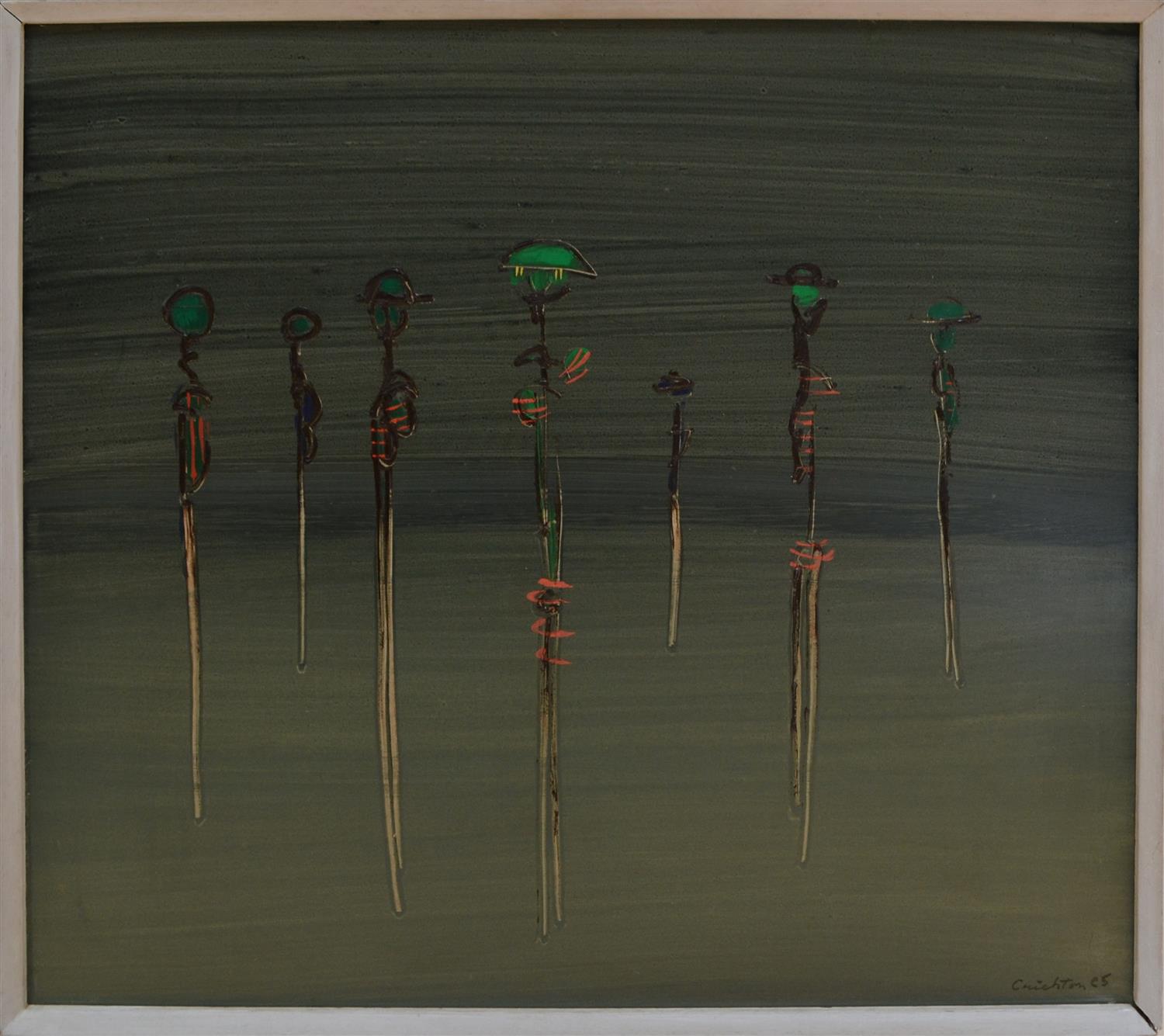RICHARD CRICHTON, GROUP OF TOTEMS 1965, OIL ON BOARD, 62 X 69CM, FRAME SIZE: 65 X 72CM, CONDITION: VERY LIGHT SURFACE SCRATCHES, LEONARD JOEL DELIVERY SIZE: MEDIUM