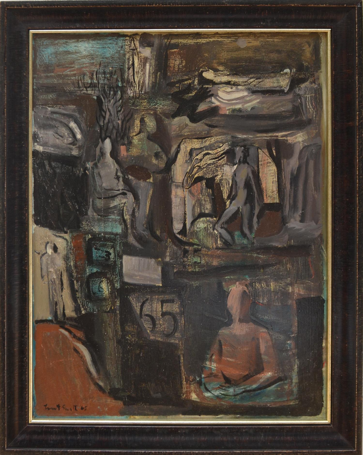 BRIAN SEIDEL, UNTITLED 1965, OIL ON BOARD, 53 X 40CM, FRAME SIZE: 62 X 49CM, FROM THE ESTATE OF DORA CHAPMAN, CONDITION: SOME SURFACE SCRATCHES AND MINOR LOSSES, LEONARD JOEL DELIVERY SIZE: MEDIUM