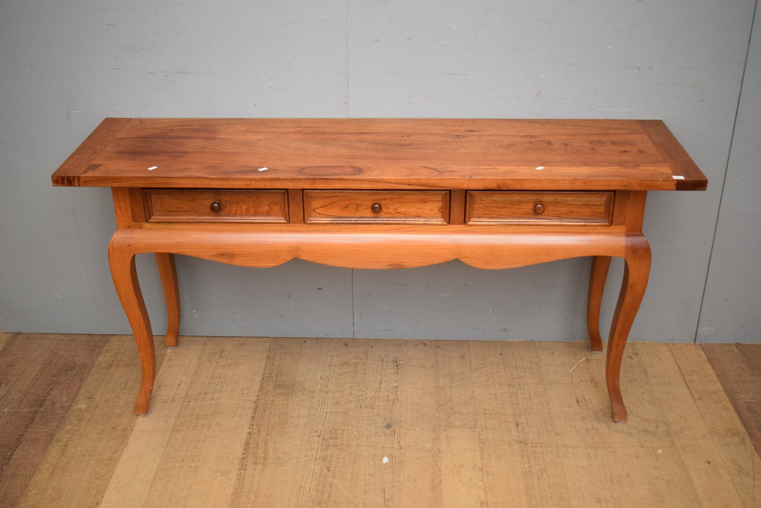 A THREE DRAWER TIMBER CONSOLE (H75 X W160 X D45 CM) (LEONARD JOEL DELIVERY SIZE: LARGE)