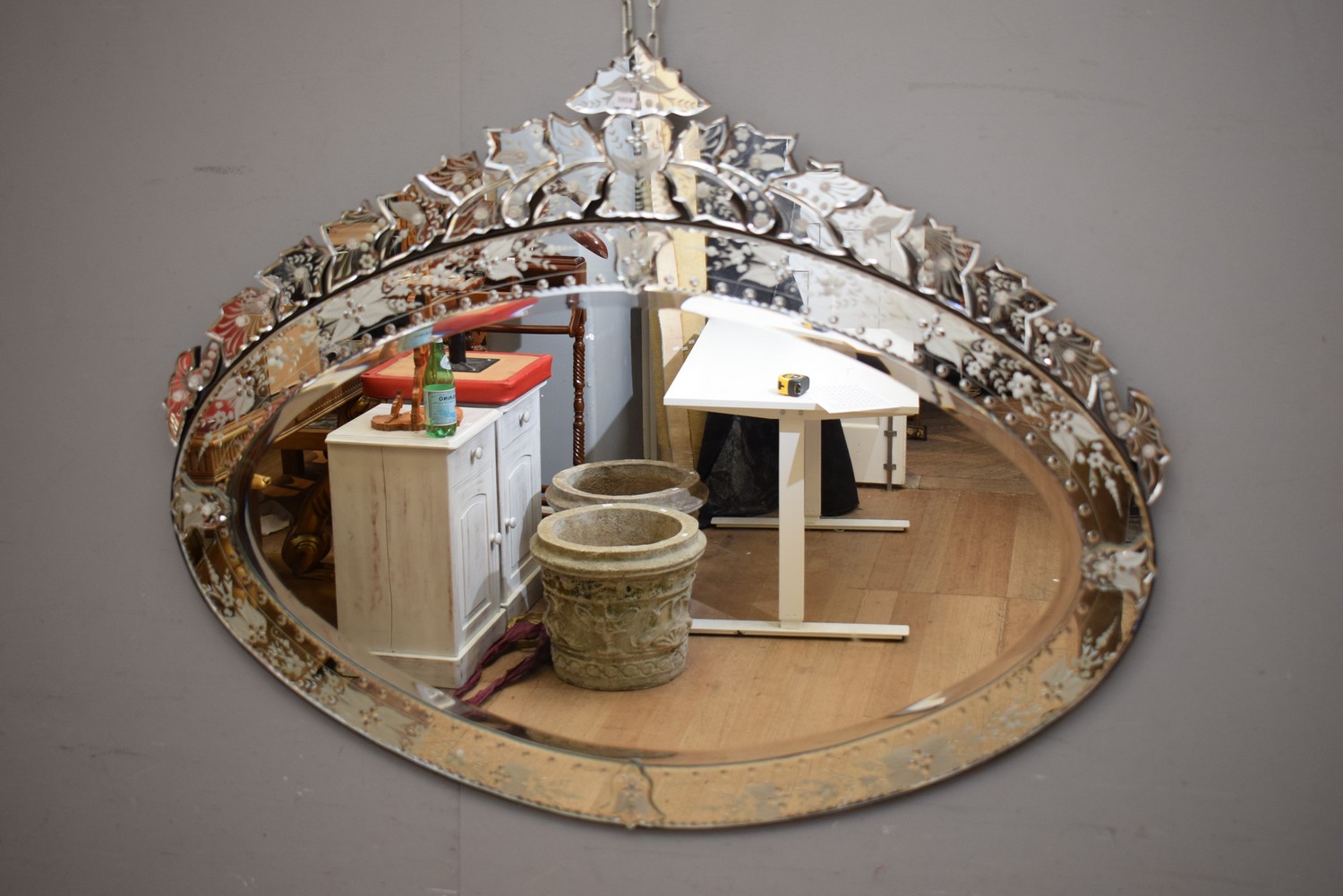 A VENETIAN STYLE OVAL MIRROR (95H x 120W CM) (LEONARD JOEL DELIVERY SIZE: LARGE)