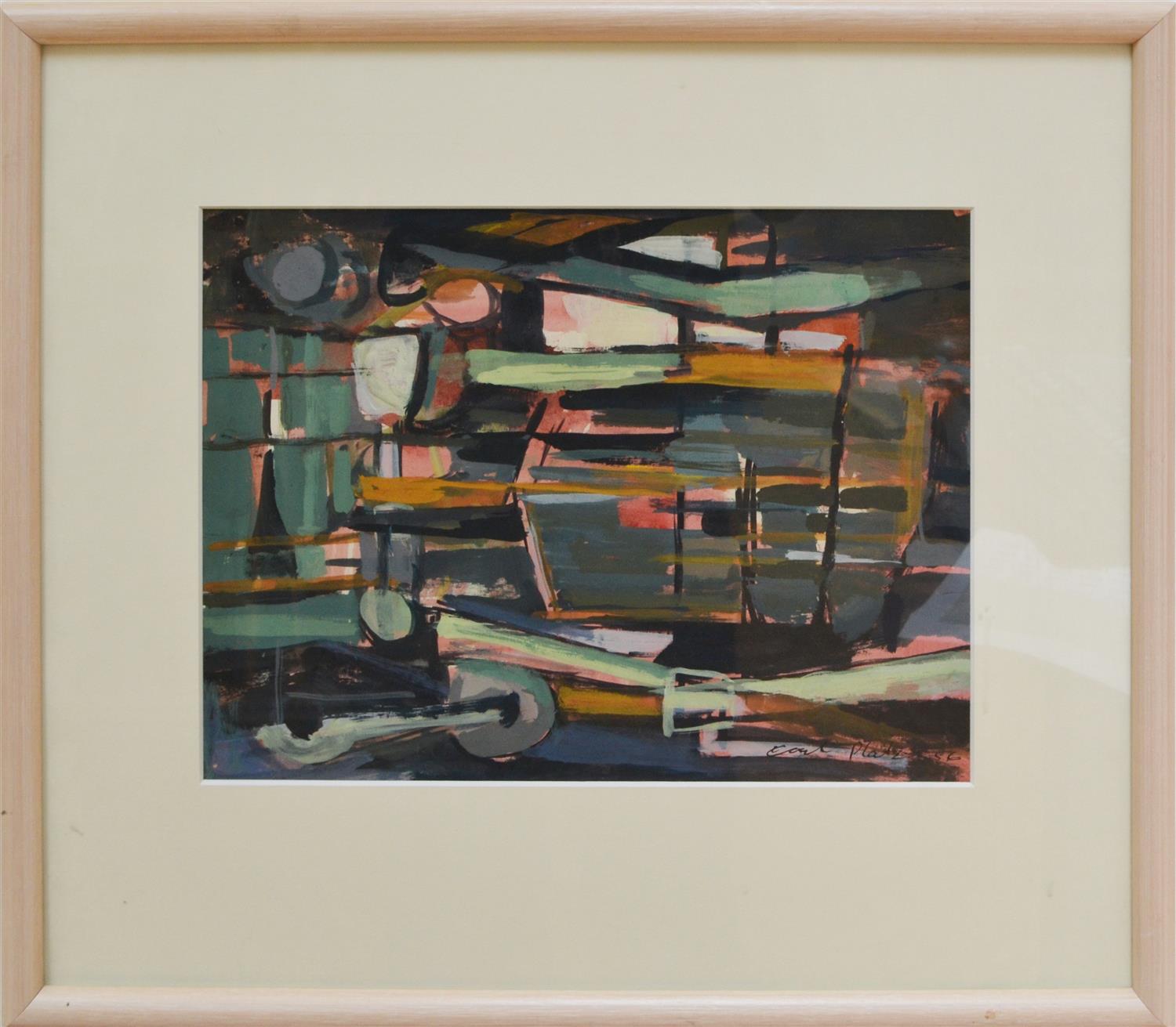 CARL PLATE, ABSTRACT 1956, GOUACHE ON PAPER, 27 X 36CM, FRAME SIZE: 48 X 56CM, CONDITION: VERY GOOD, NO MAJOR FAULTS, WELL FRAMED, LEONARD JOEL DELIVERY SIZE: SMALL