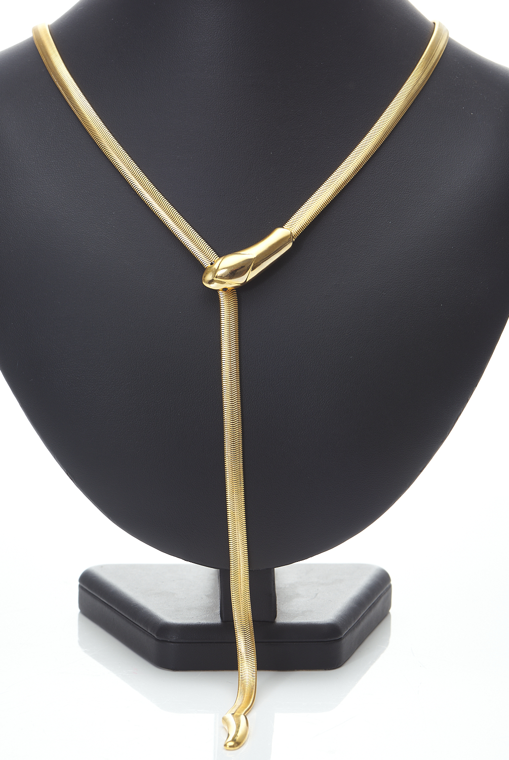 A RETRO SNAKE LARIAT NECKLACE IN GILT, LENGTH 74CMS (ADJUSTABLE)