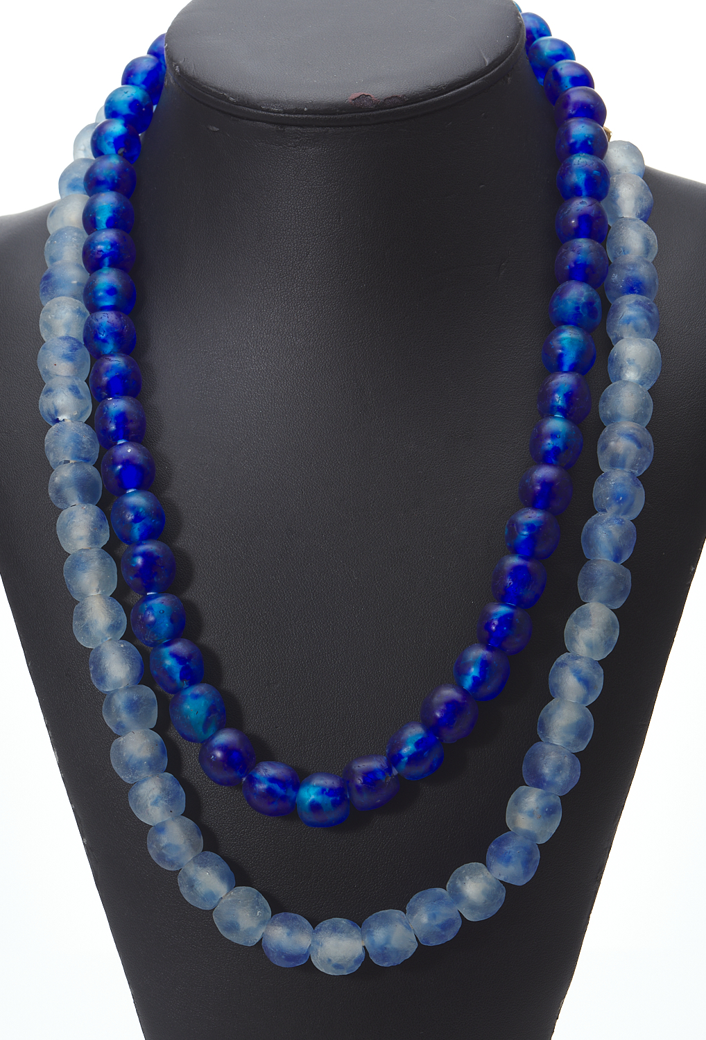 TWO BLUE GLASS BEADED NECKLACES FROM TIBET