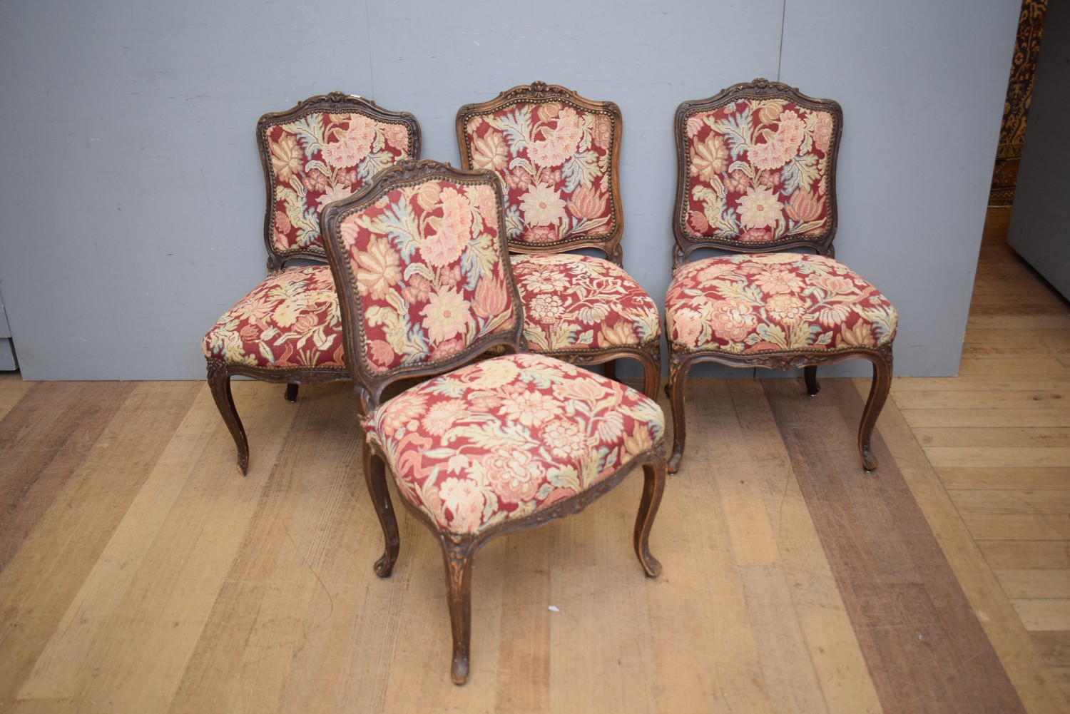 SET OF FOUR OF EARLY 19TH CENTURY LOUIS XV SIDE CHAIRS, C.1840'S (A/F - BROKEN JOINTS) (H93 X W59 X D59 CM) (LEONARD JOEL DELIVERY SIZE: LARGE)