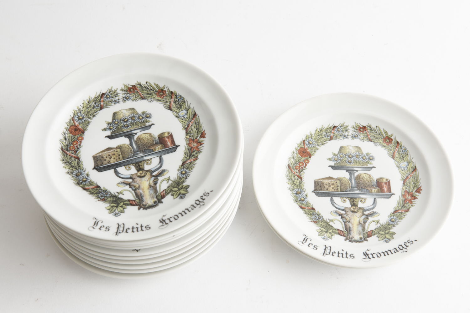 A SET OF TWELVE FRENCH PLATES - "LES PETITS FROMAGES" LIMOGES, DIA.19CM EACH, LEONARD JOEL LOCAL DELIVERY SIZE: SMALL