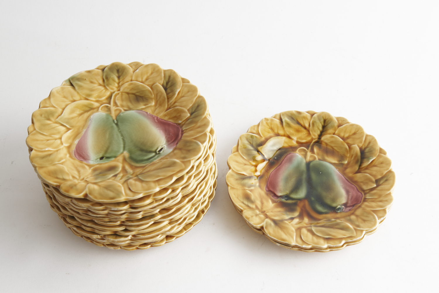 A SET OF FOURTEEN SARREGUEMINES MAJOLICA PLATES, DIA.19CM EACH, LEONARD JOEL LOCAL DELIVERY SIZE: SMALL