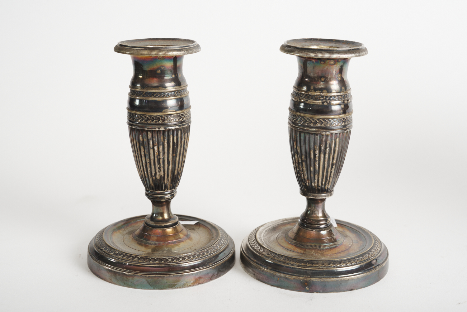 PAIR OF EARLY 20TH CENTURY LOUIS XVI MANNER CANDLESTICKS, H.13CM, LEONARD JOEL LOCAL DELIVERY SIZE: SMALL