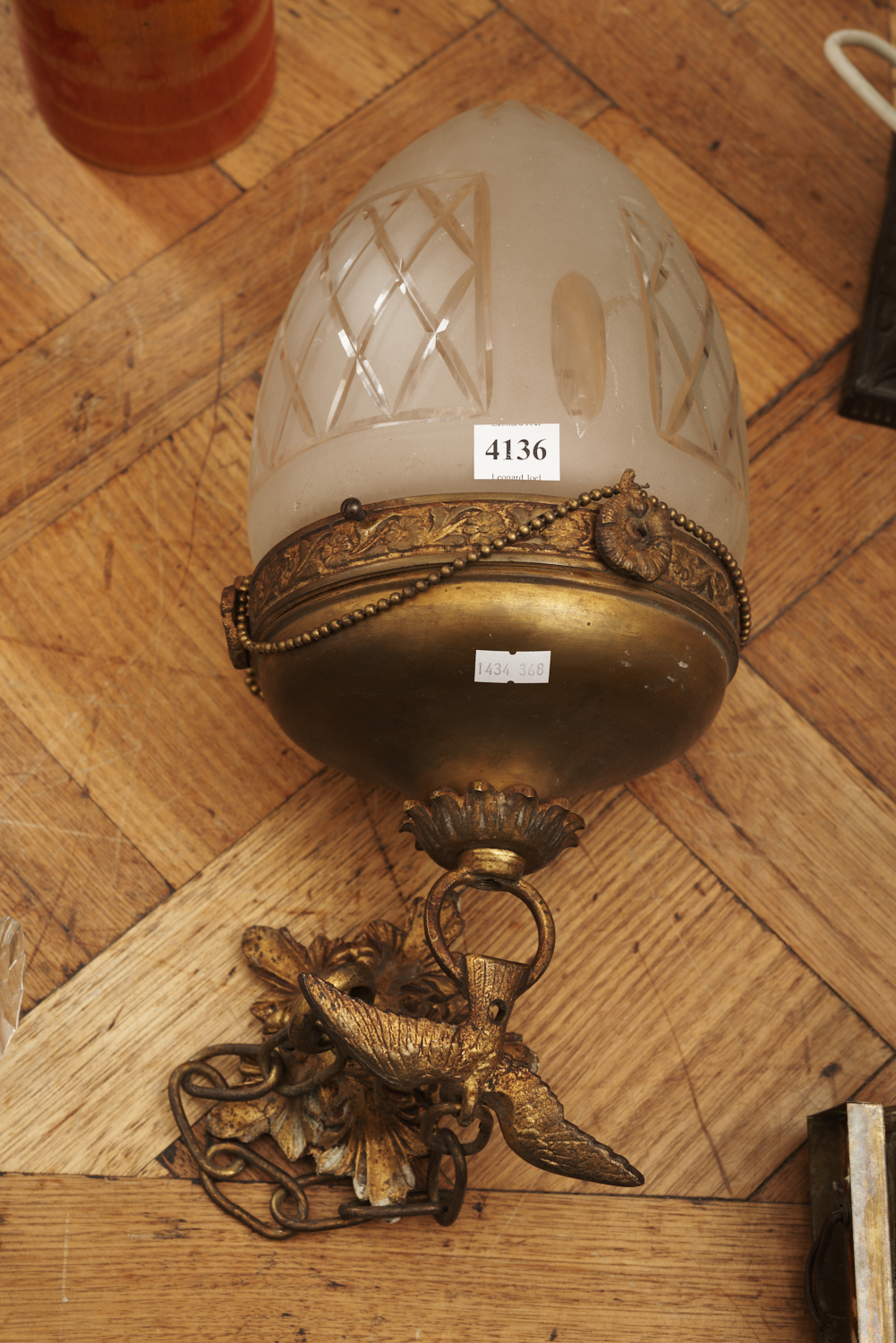 FRENCH 1940S EMPIRE MANNER PENDANT LIGHT, H.40CM, LEONARD JOEL LOCAL DELIVERY SIZE: SMALL