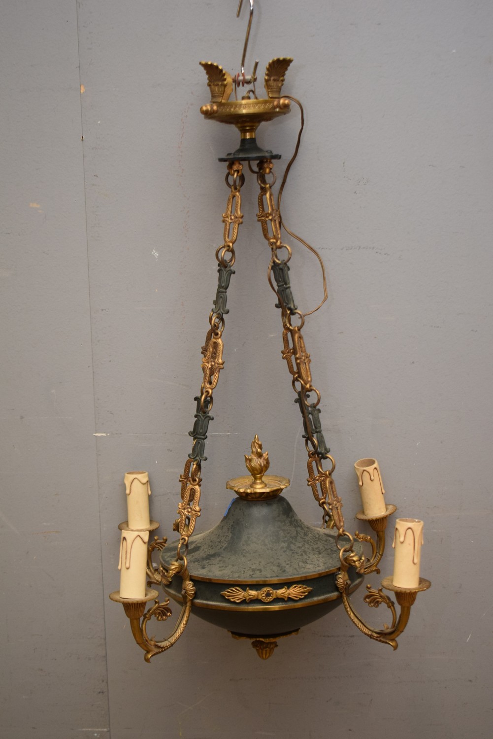 FRENCH ART DECO PERIOD EMPIRE MANNER CHANDELIER, C.1940'S (A/F) (70H CM) (LEONARD JOEL DELIVERY SIZE: MEDIUM)