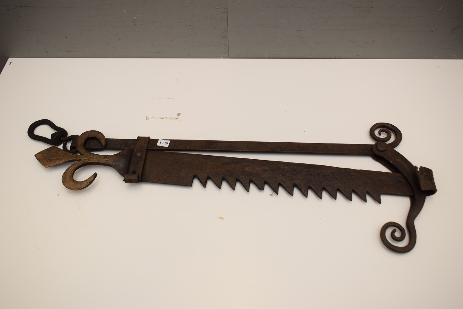 19TH CENTURY FRENCH WROUGHT IRON CARPENTRY SHOP SIGN (31H x 90W CM) (LEONARD JOEL DELIVERY SIZE: MEDIUM)