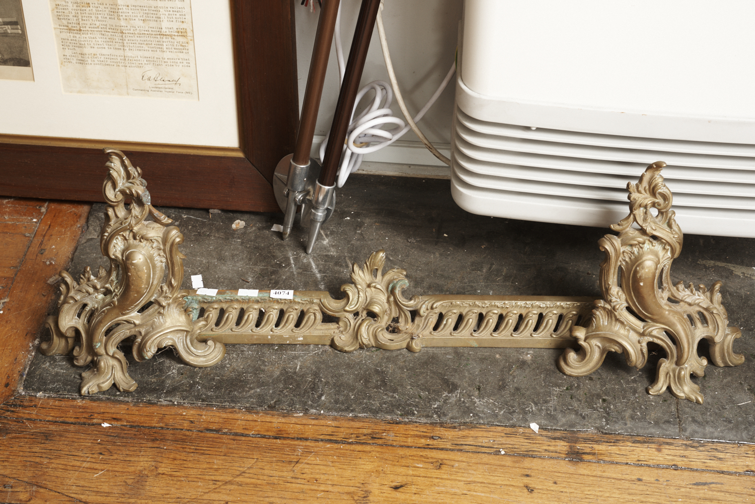 A LOUIS XV STYLE BRASS CHENET, LEONARD JOEL LOCAL DELIVERY SIZE: SMALL
