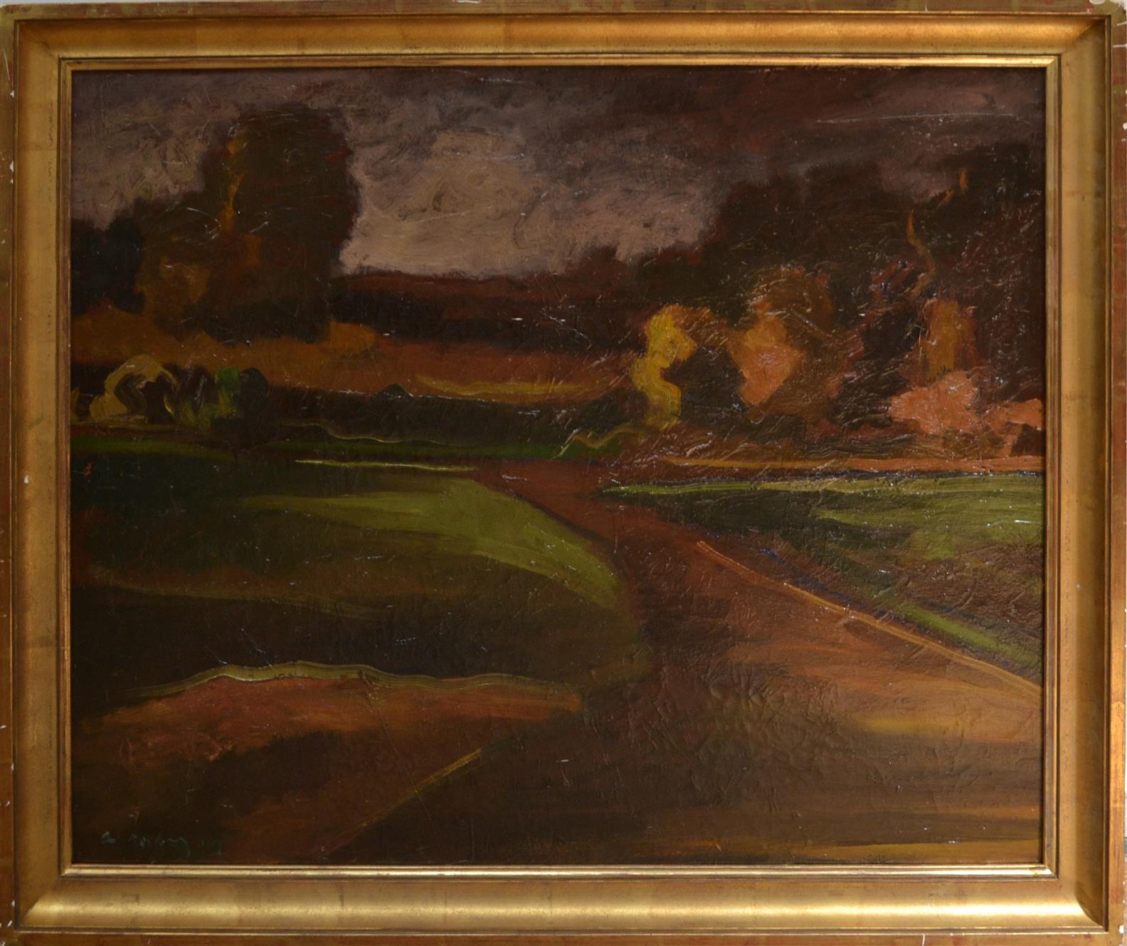 ARTIST UNKNOWN, LANDSCAPE, OIL ON CANVAS, 59 X 72CM, FRAME SIZE: 68 X 82CM, CONDITION: SURFACE CRACKING THROUGHOUT, TEXTURAL SURFACE, LEONARD JOEL DELIVERY SIZE: MEDIUM