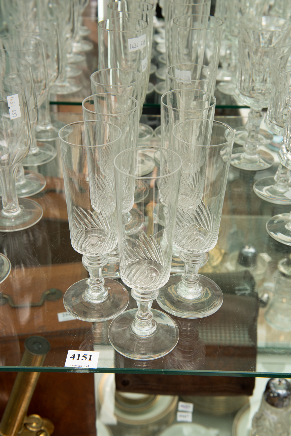 ONE SET OF SIX AND ONE SET OF SEVEN FRENCH CRYSTAL CHAMPAGNE FLUTES, LEONARD JOEL LOCAL DELIVERY SIZE: SMALL