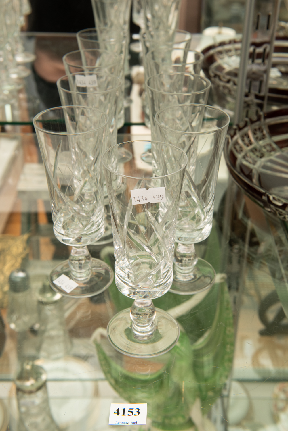 A SET OF NINE VINTAGE FRENCH CRYSTAL CHAMPAGNE FLUTES, LEONARD JOEL LOCAL DELIVERY SIZE: SMALL