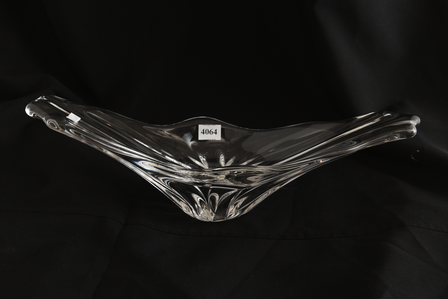 A VINTAGE DAUM CLEAR GLASS CENTREPIECE, 41.5 CM WIDE, LEONARD JOEL LOCAL DELIVERY SIZE: SMALL