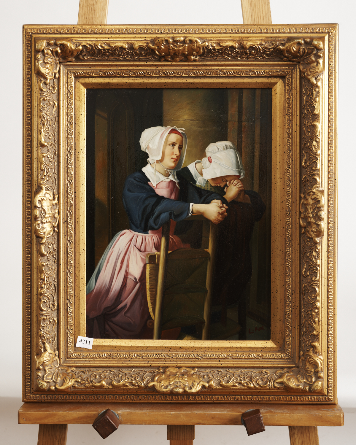 PAINTING OF TWO GIRLS IN GILT FRAME, 40 X 30CM, LEONARD JOEL LOCAL DELIVERY SIZE: SMALL