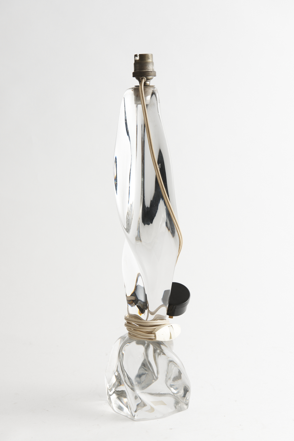 A MID-CENTURY FRENCH SIGNED DAUM ART GLASS TABLE LAMP H.47CM, LEONARD JOEL LOCAL DELIVERY SIZE: SMALL