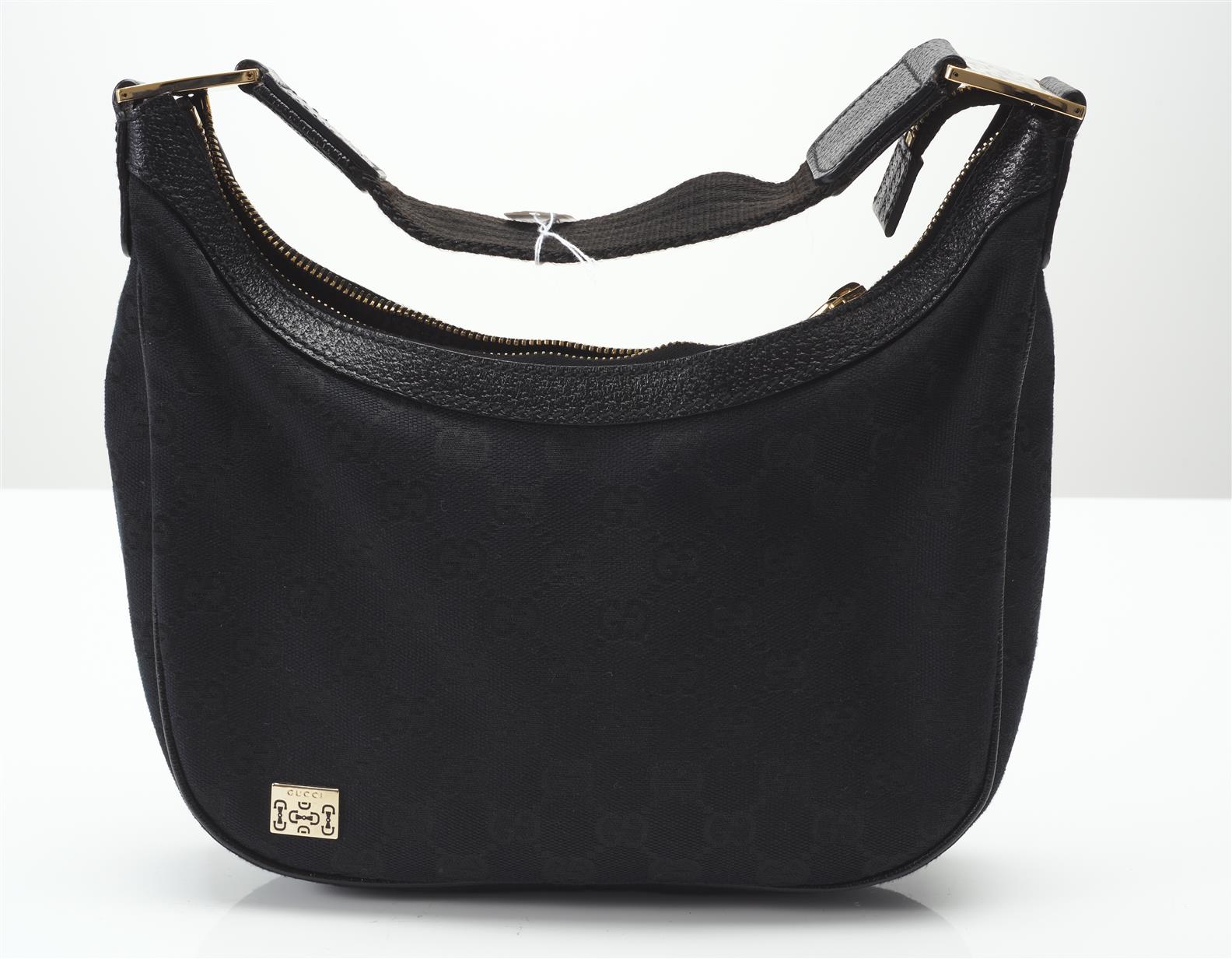 Styled in black monogram canvas with black leather trim and gold metal hardware, 28 x 15 x 4cm.