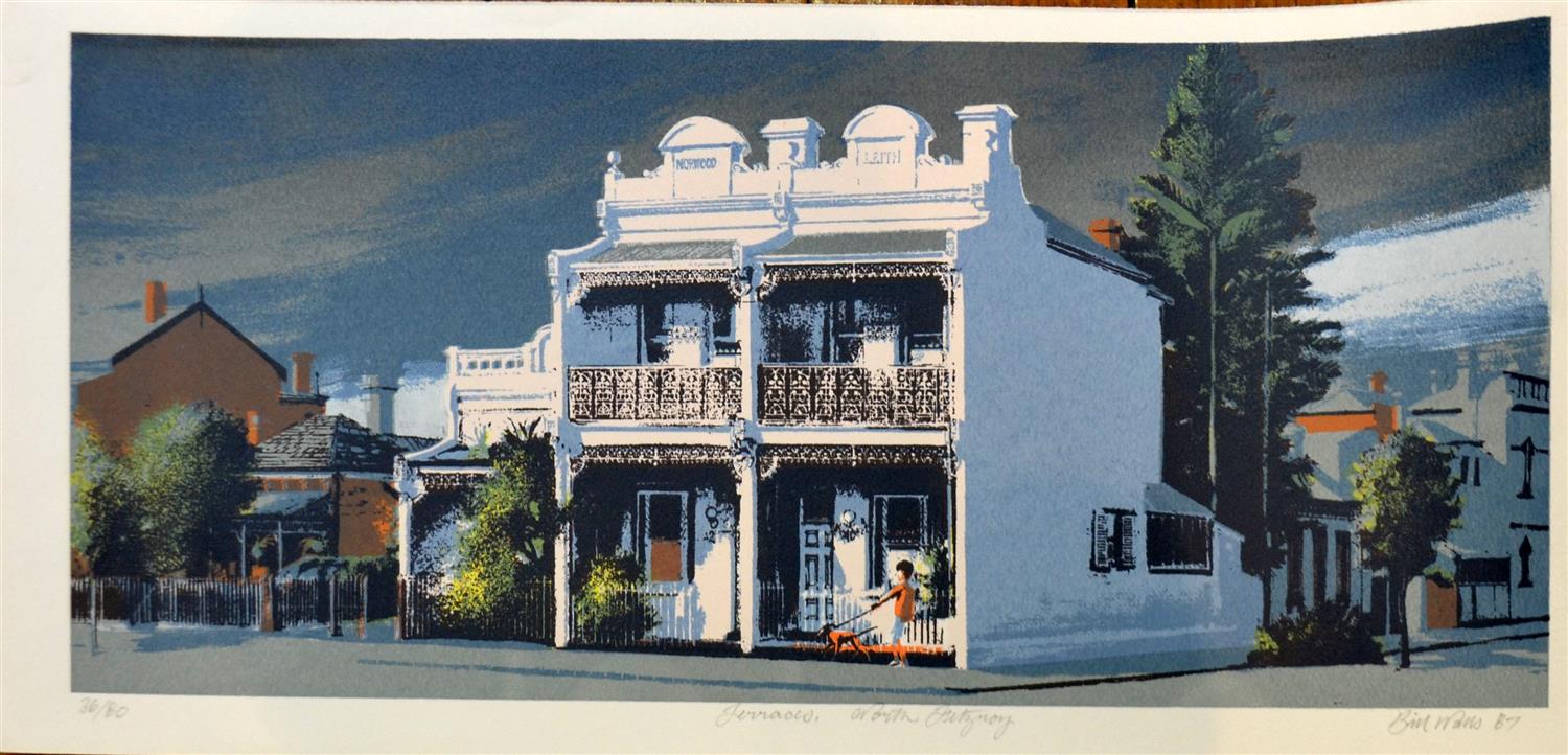 BILL WALLS, TERRACES, NORTH FITZROT 1987, SCREENPRINT 36/80, 22 X 49CM, UNFRAMED, CONDITION: VERY GOOD, NO FAULTS TO REPORT, LEONARD JOEL DELIVERY SIZE: SMALL