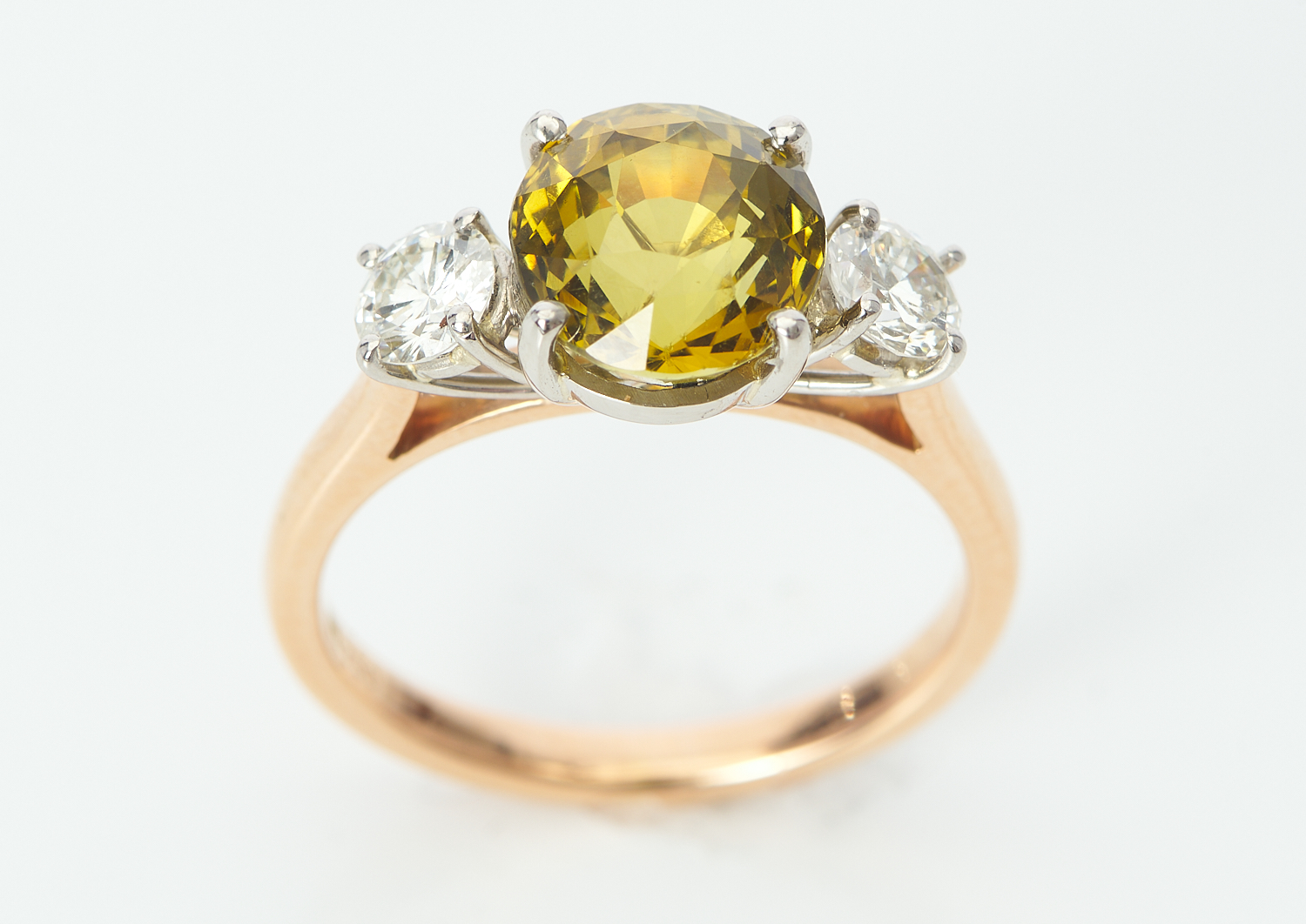 A SOLITAIRE COGNAC DIAMOND RING BY CARTMER-The emerald cut diamond weighing 4.0cts, in a four claw setting, signed, in 18ct rose gol...