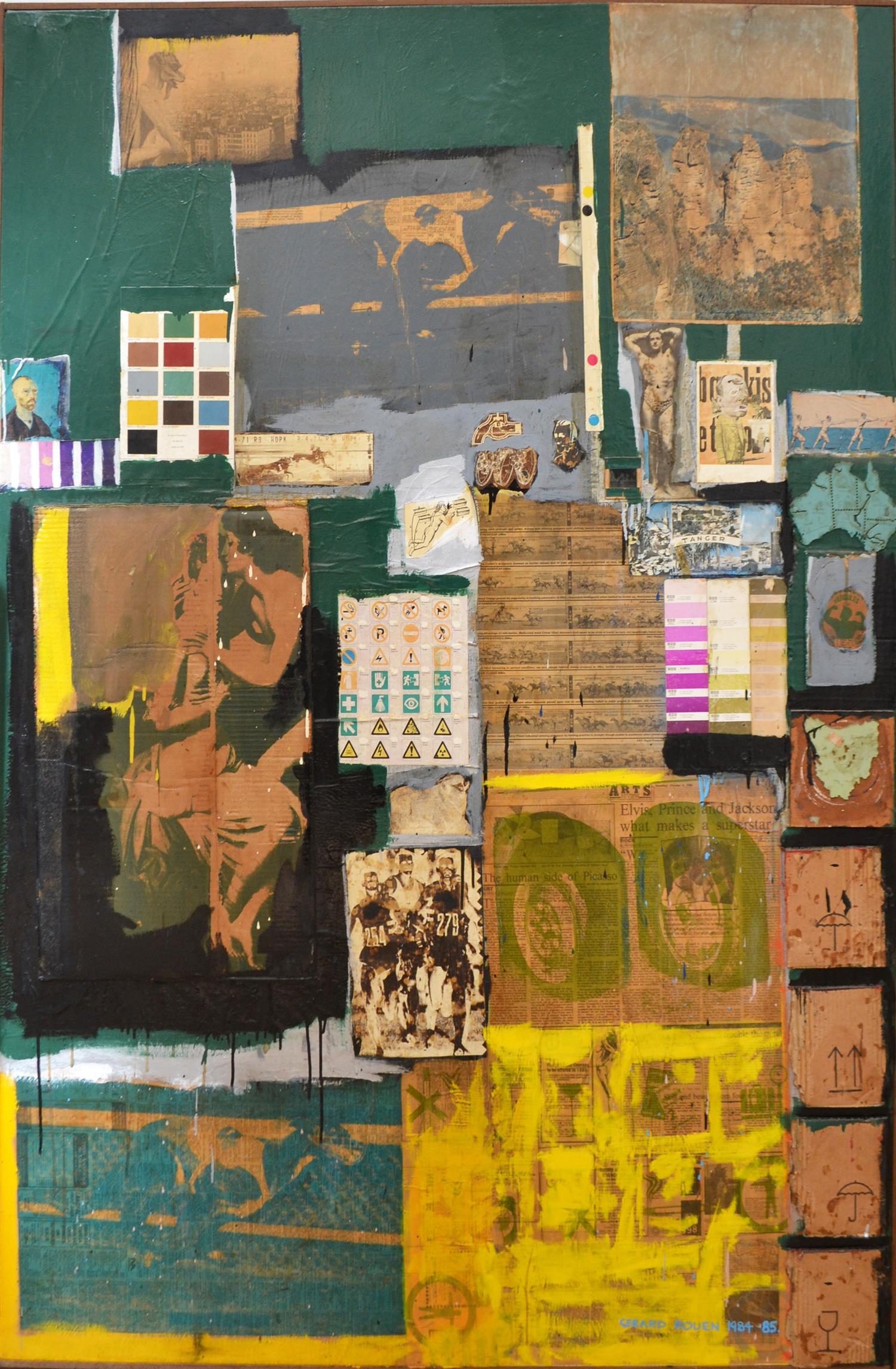 GERARD ROUEN, PAINTING NO. 2 1984-5, MIXED MEDIA AND COLLAGE ON CANVAS, 167 X 122CM, FRAME: 170 X 124CM. CONDITION: WORK IS IN OVERALL GOOD CONDITION, FLAWS INHERENT TO FOUND MATERIALS, DIRT AND FOXING. LEONARD JOEL DELIVERY SIZE: LARGE