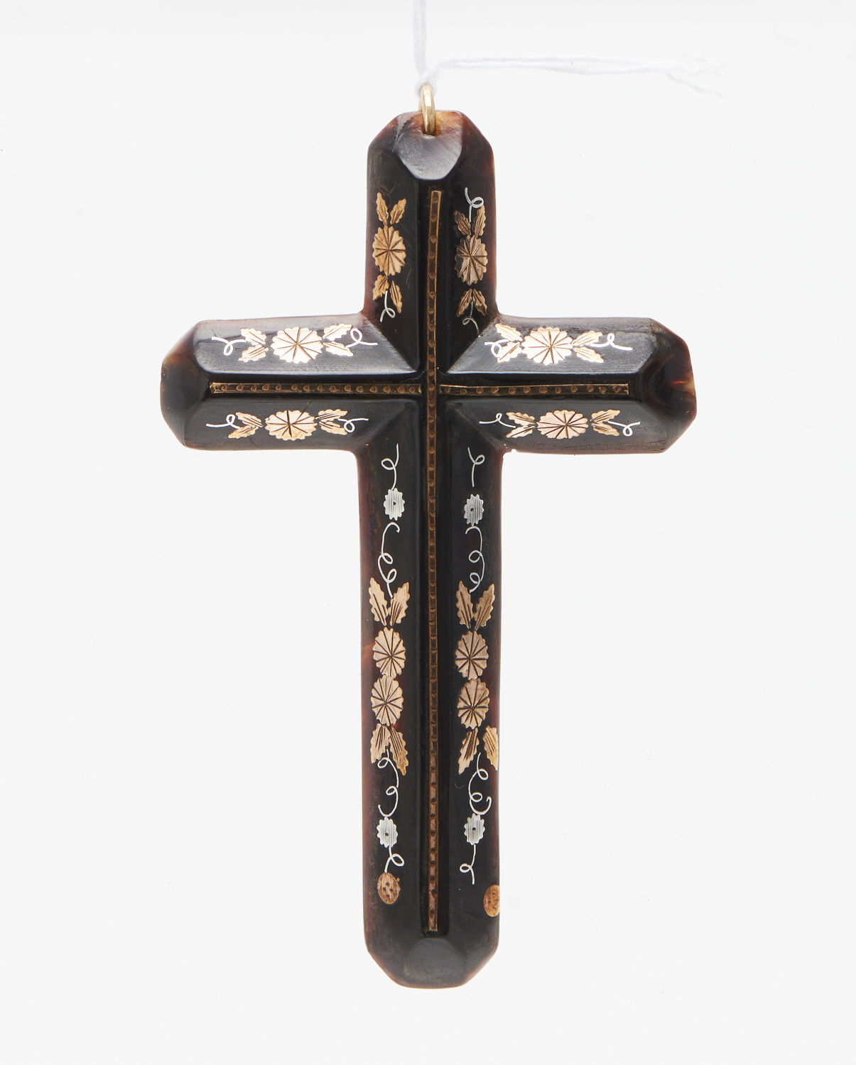 A VICTORIAN PIQUÉ CROSS, CIRCA 1890, LENGTH 75MM