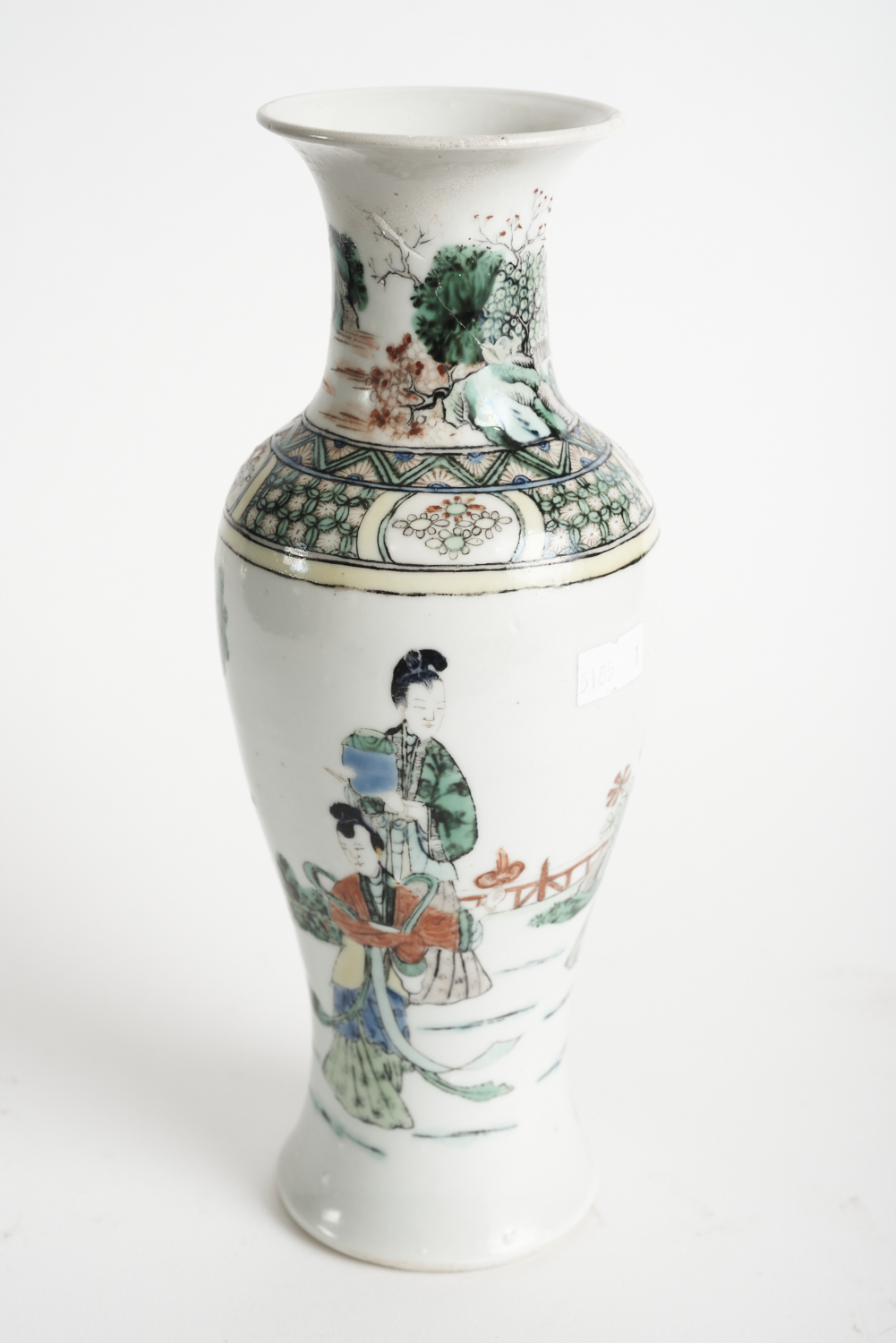 A CHINESE ENAMELLED PORCELAIN VASE, (A/F, HAIRLINES AND RESTORATION), H.27CM, LEONARD JOEL LOCAL DELIVERY SIZE: SMALL