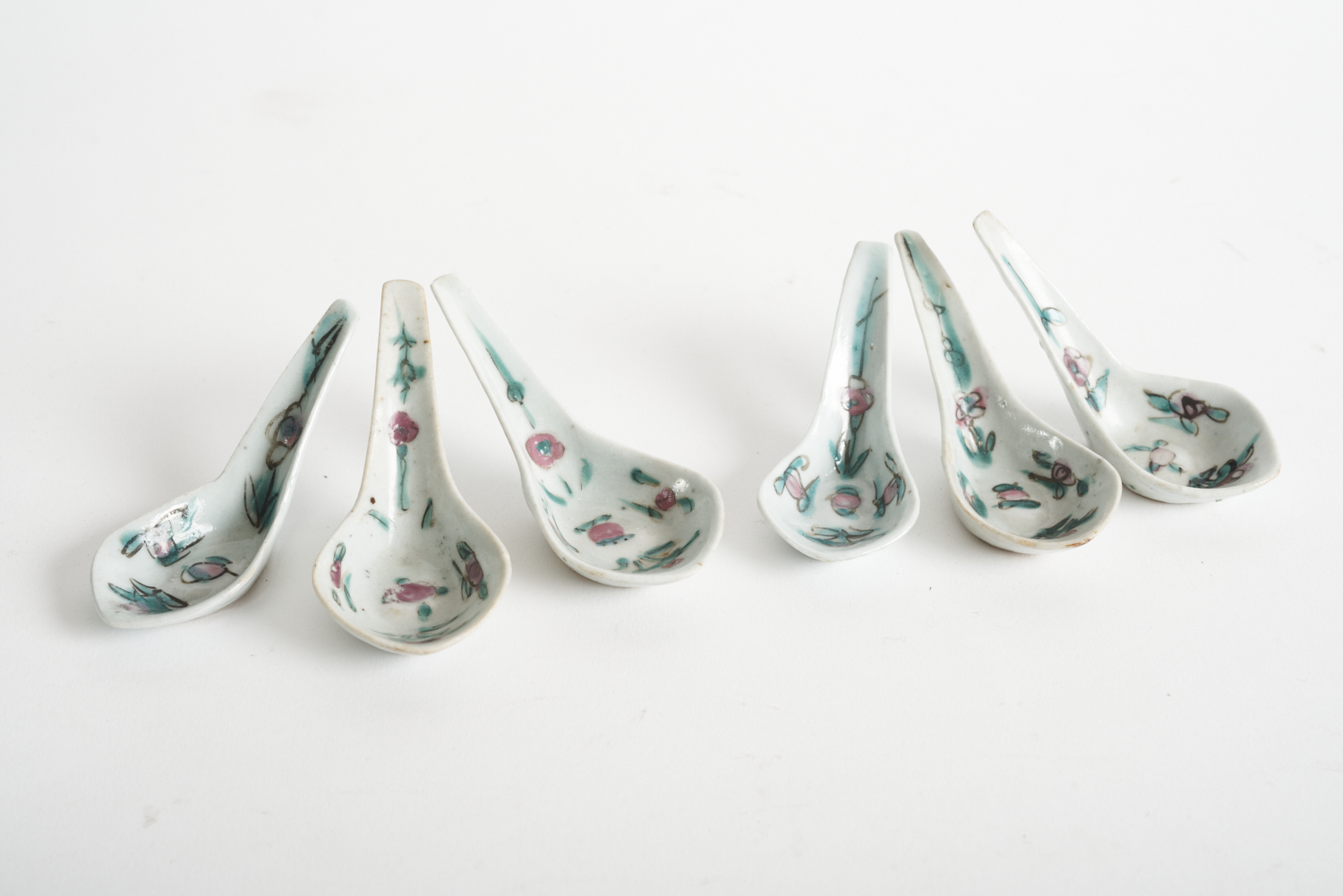 SIX CHINESE FAMILLE ROSE SPOONS, LEONARD JOEL LOCAL DELIVERY SIZE: SMALL