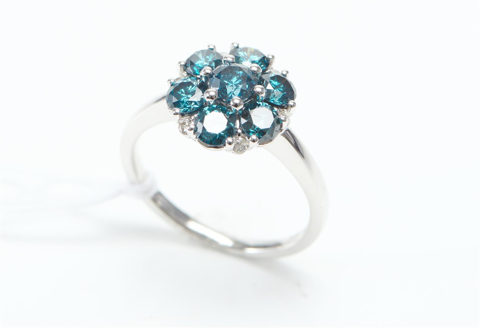 A DIAMOND DRESS RING IN 18CT WHITE GOLD - The round brilliant cut diamond weighing 1.02ct, within a border of round brilliant cut di...