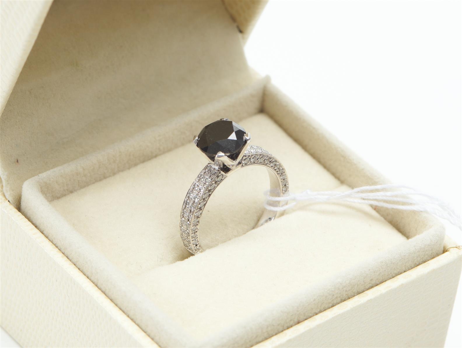 A DIAMOND DRESS RING IN 18CT WHITE GOLD - The round brilliant cut diamond weighing 1.02ct, within a border of round brilliant cut di...